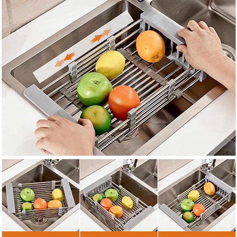 ✨Rổ Rút Inox Đa Năng Gác Chậu Rửa Chén, Rửa Hoa Quả - 2 màu xám và đen ngẫu nhiên
