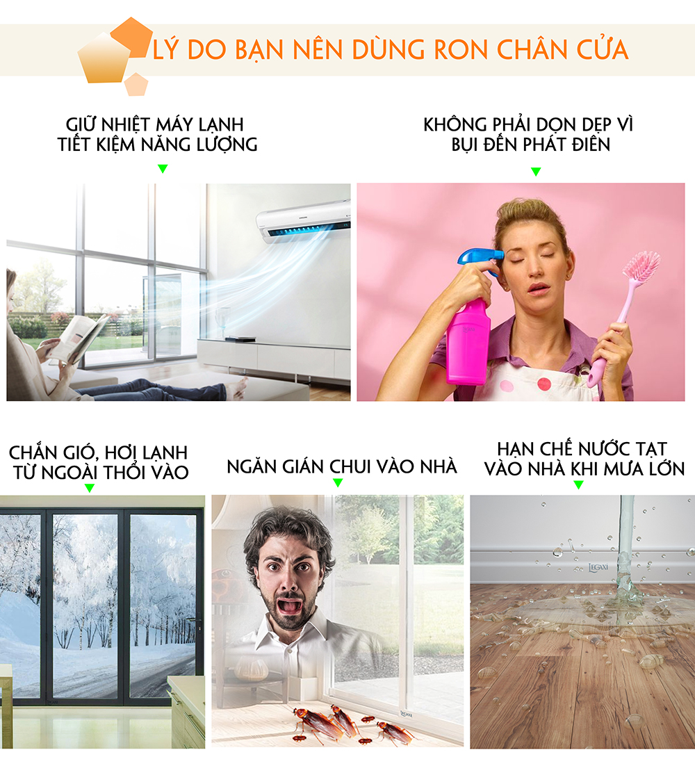 - Ngăn côn trùng, sâu bọ, muỗi, ruồi, gián, chuột bò vào phòng qua khe chân cửa