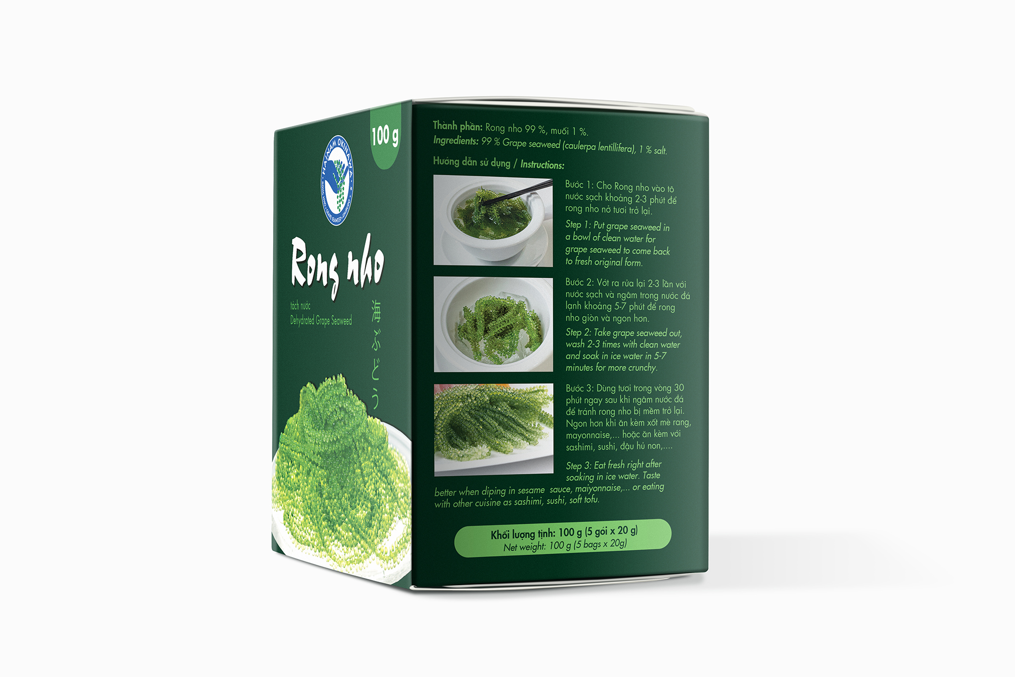 Rong nho Tách nước Natusea của công ty Mitasu 100% organic, đạt chuẩn xuất khẩu được cấp chứng nhận FDA Hoa Kỳ và HACCP. Rong nho Natusea được nuôi trồng và khai thác theo tiêu