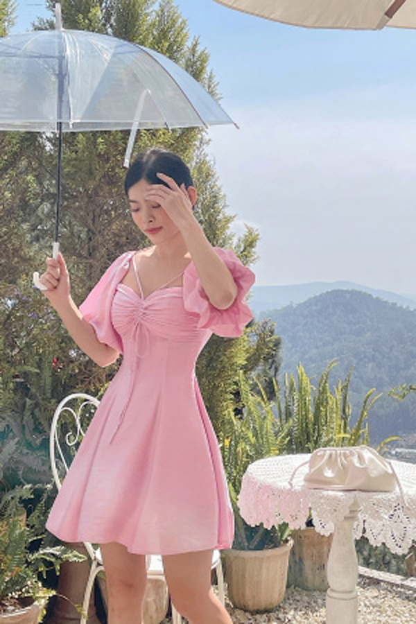 ღ THÔNG TIN SẢN PHẨM: Tên sản phẩm: Đầm hồng tay voan Thông số size: S, M, L, XL Chất liệu: Chất voan Chi tiết sản phẩm: có lót quần, không