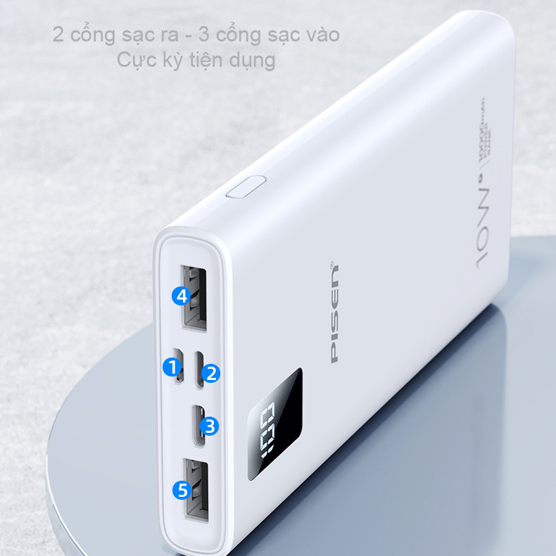 ✨Sạc dự phòng Pisen Digital 123-A 10000mAh, white (CY-DY02) - Hàng chính hãng