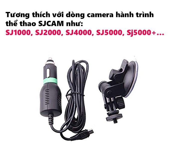 Sạc Xe Hơi Cho Camera Hành Trình SJCAM SJ4000 & SJ5000 & M10  Chân đế và sạc trên ô tô cho camera thể thao SJCAM là một phụ kiện không thể thiếu khi bạn sử dụng camera thể thao làm camera hành trình trên xe ô tô. Chân đế sẽ là thiết bị giữ cố định camera trên xe ô tô, nó có chân đế hút kính đa năng với lực hút mạnh, giúp bạn gắn chắc action camera, đảm bảo không bị rơi ra khi xe đang di chuyển kể cả những cung đường xấu nhất.     ĐẶC ĐIỂM NỔI BẬT Góc quay 180 độ Với góc quay 180 độ xoay và nghiêng đầu, đây là một tiện ích thiết yếu cho bạn có thể điều chỉnh, xem hoặc chụp ảnh các đối tượng từ chiếc xe của mình từ nhiều góc độ và không bị rung, lắc.     Tương thích nhiều loại sản phẩm SJCAM  Chân đế và sạc trên ô tô hoàn toàn tương thích với dòng camera hành trình thể thao SJCAM như: SJ1000, SJ2000, SJ4000, SJ5000, Sj5000+…   THÔNG SỐ KỸ THUẬT
