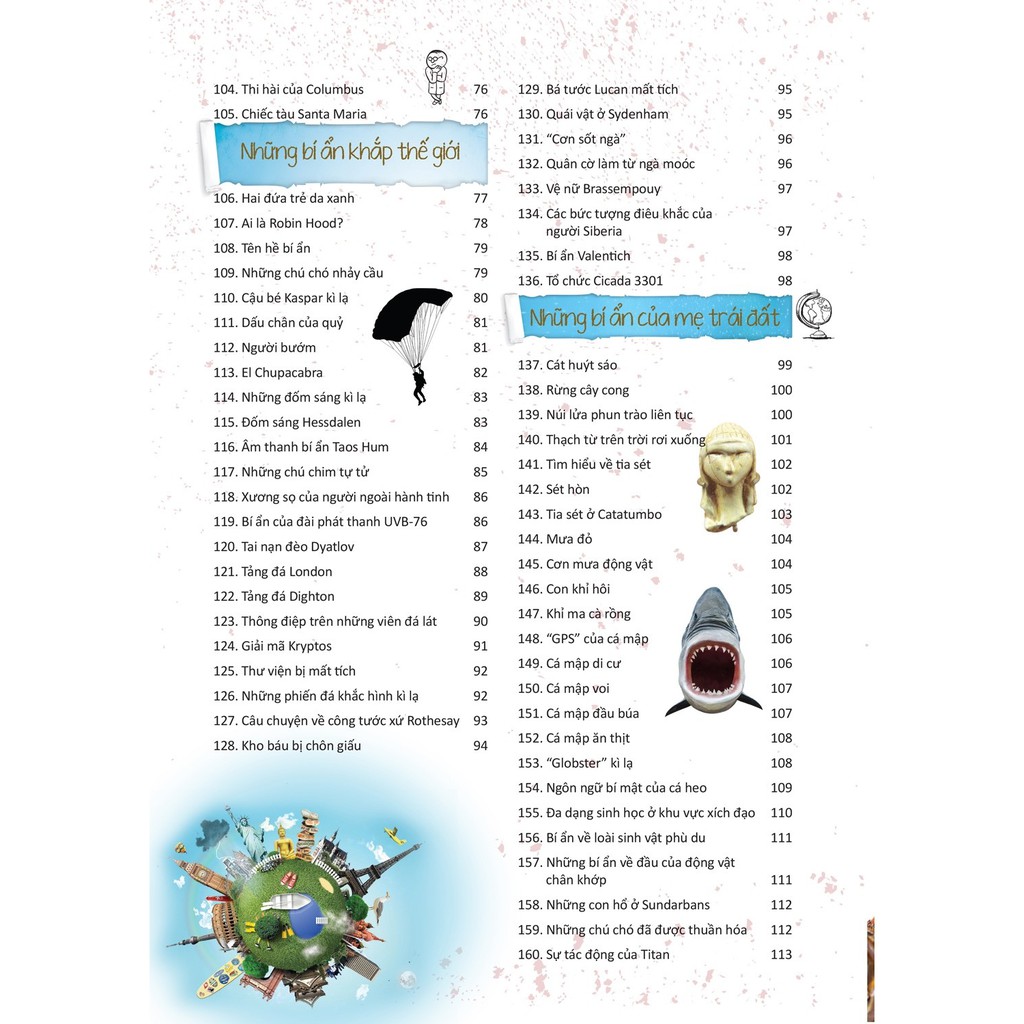 SÁCH: 365 BÍ ẨN CHƯA ĐƯỢC LÍ GIẢI Mã sản phẩm: 16 Tác giả : OM Books Dịch giả :Nhóm Sóc Xanh (dịch ) NXB: NXB Thế giới Nhà Phát Hành: Minh Thắng Book Kích thước : 19 x 27 cm Năm xuất bản : 2019 Số trang : 241 Khối lượng : 1300 grams Bìa : bìa cứng