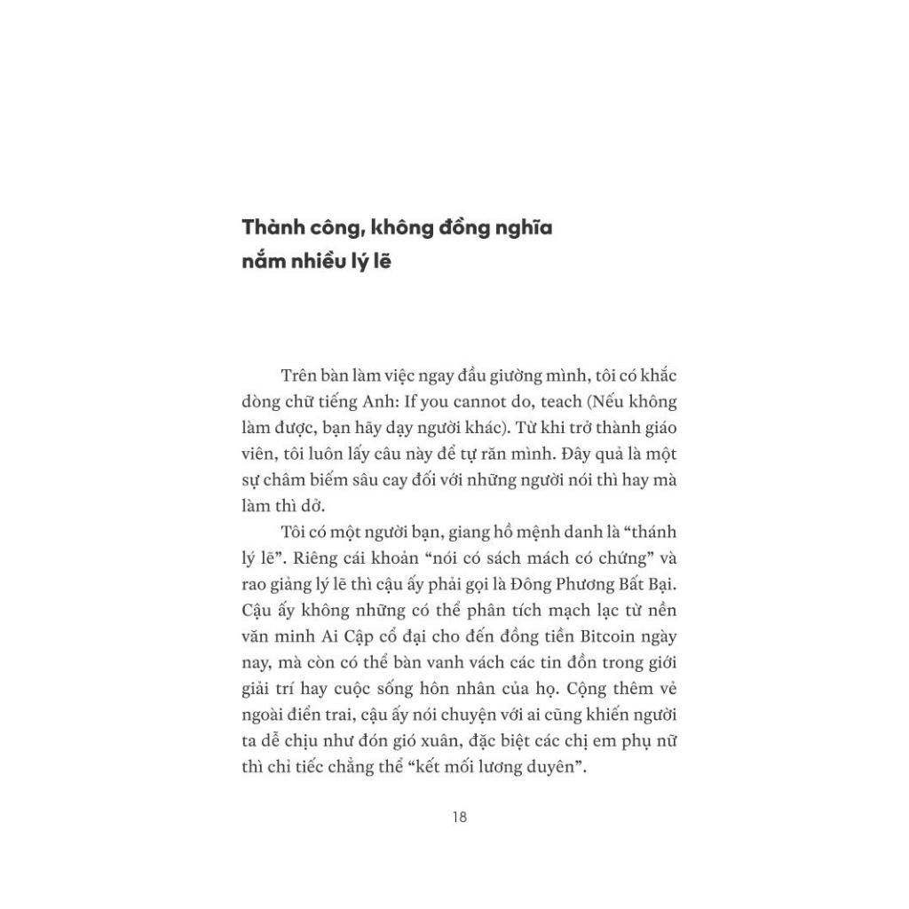 Ai cũng cần sức mạnh để lay động bản thân. Nhưng nếu một cuốn sách chỉ khiến bạn thấy cảm động, mà không dạy bạn về phương pháp, chứng tỏ nó chưa có ích nhiều cho bạn. Trong cuốn sách này, Ali đã mang tới nhiều phương pháp nhằm giúp bạn nâng cao chất lượng cuộc sống của mình, trong đó quan trọng nhất dường như là phương pháp quản lý thời gian cùng những công cụ được chứng minh có hiệu quả, có thể giúp ta vừa có đủ thời gian để nghỉ ngơi giải trí, vừa đảm bảo hoàn thành công việc và học tập trong khoảng thời gian ngắn nhất với chất lượng cao. Qua từng chương sách, bạn có thể bước từng bước nhỏ vững vàng, dần dần đi được xa hơn, đến gần hơn với ước mơ của mình.