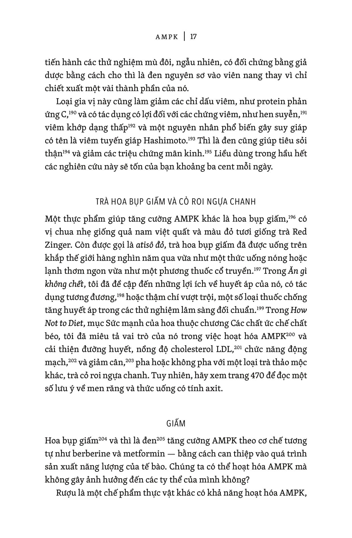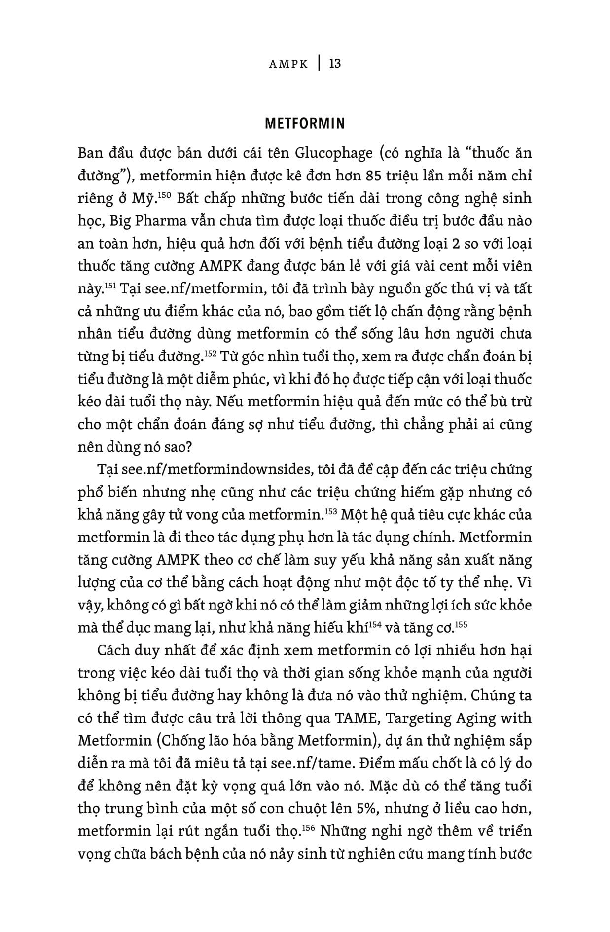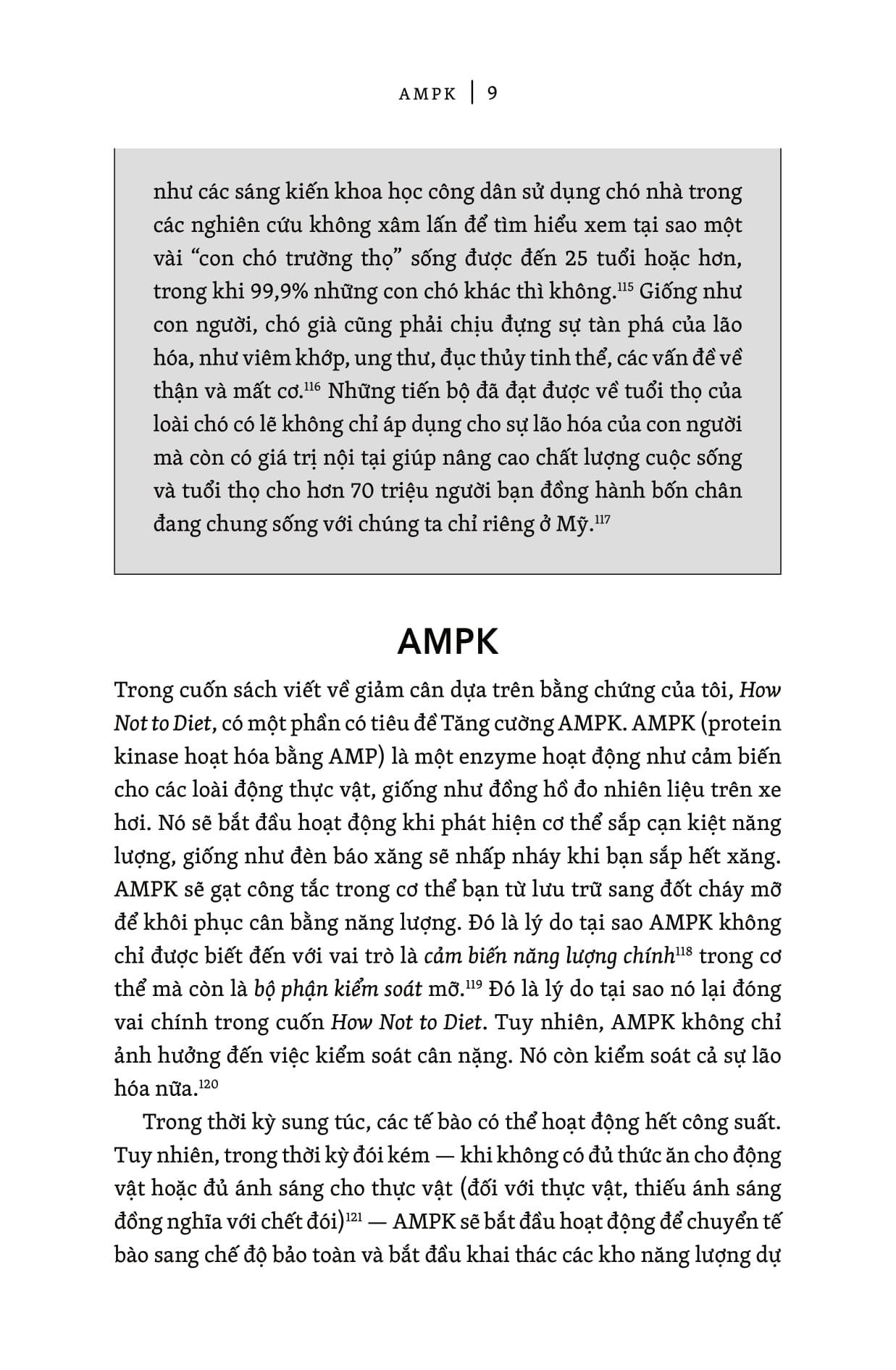 Từ lâu các bác sĩ xem lão hóa là một căn bệnh, nhưng già đi không nhất thiết là đau ốm hơn. Có mười một con đường lão hóa trong các tế bào của cơ thể và chúng ta có thể chặn đứng từng con đường đó. Có thể thúc đẩy các quá trình như tự thực bào, tái chế rác thải không sử dụng được, bằng spermidine, một hợp chất có trong đậu nành lên men tempeh, nấm và mầm lúa mì. Có thể thải loại một số tế bào “xác sống” già nua gây viêm và liên quan đến nhiều bệnh tật do tuổi tác bằng các loại thực phẩm giàu quercetin như hành tây, táo và cải xoăn. Và chúng ta có thể chống lại tác động của lão hóa mà không tốn kém. Tại sao phải chi tiền mua serum dưỡng da vitamin C và nicotinamide khi bạn có thể tự làm với giá rẻ hơn tới 2.000 lần?