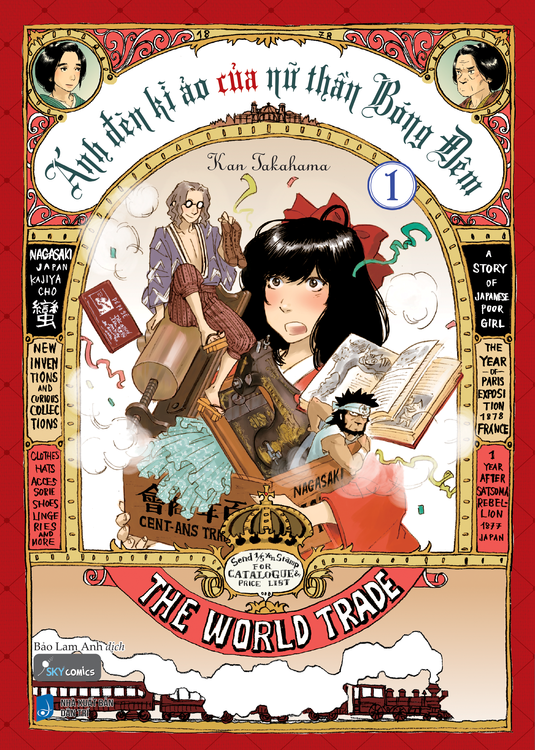 Ánh Đèn Kì Ảo Của Nữ Thần Bóng Đêm - Tập 1 Ánh đèn kì ảo của nữ thần Bóng Đêm - Alice và chú thỏ trắng “Ánh đèn kì ảo của Nữ thần Bóng Đêm” là một bộ truyện tranh đời thường, kì ảo lấy bối cảnh tại thành phố Nagasaki nhộn nhịp vào năm 1878 - một thời kỳ đầy sôi động khi văn hóa phương Tây bắt đầu lan tỏa mạnh mẽ tại Nhật Bản. Câu chuyện xoay quanh Miyo, một cô gái trẻ mồ côi sau chiến tranh Tây Nam, đến xin việc tại một tiệm dụng cụ chuyên bán đồ quý hiếm ở Nagasaki, được gọi là Ban. Thế nhưng cô không biết chữ, không giỏi nấu ăn hay may vá, cũng chẳng đáp ứng được bất cứ yêu cầu nào của công việc. Miyo chỉ có duy nhất một khả năng kì lạ: sờ vào vật gì là sẽ nhìn thấy được chủ nhân cũ và chủ nhân tương lai của nó. Ấn tượng với năng lực này, chủ tiệm Koura Momotoshi đã đồng ý nhận cô vào làm. Công việc tại cửa tiệm cùng những chiếc váy, máy khâu, ống nhòm, giày bốt,... và các vật dụng khác được chủ tiệm mua tại Triển lãm Paris đã khơi dậy sự tò mò của Miyo. Từng món đồ lại mang theo một câu chuyện, một phần kì diệu của thế giới rộng lớn bên ngoài nước Nhật. Qua chúng, Miyo dần khám phá nhiều hơn về con người, văn hóa, tình yêu và chính bản thân m.ình. Không chỉ xoay quanh hành trình trưởng thành của cô bé mồ côi Miyo, đây còn là câu chuyện về nước Nhật thời chuyển m.ình: sự va chạm giữa truyền thống và hiện đại, giữa Đông và Tây, giữa những ký ức đau thương và khát vọng về tương lai. Mời các bạn đón đọc tập đầu tiên của “Ánh đèn kì ảo của nữ thần Bóng Đêm” - bộ truyện tranh đạt Giải thưởng Văn hóa Osamu Tezuka năm 2020!