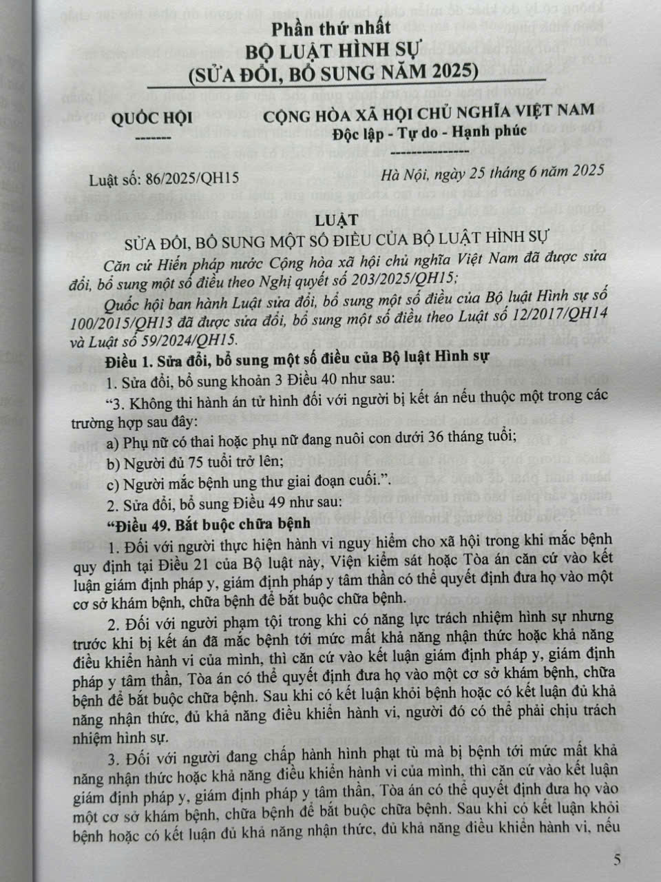 Phần thứ nhất. BỘ LUẬT HÌNH SỰ (SỬA ĐỔI, BỔ SUNG NĂM 2025)