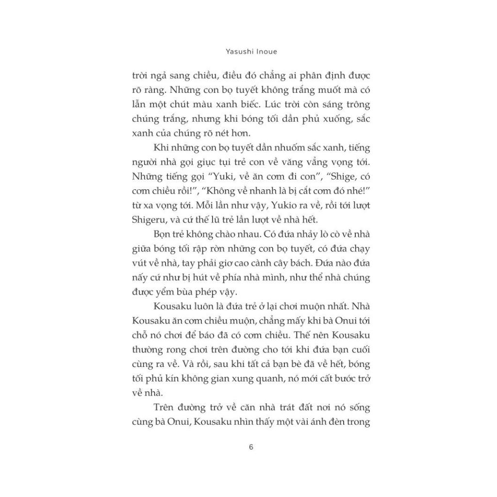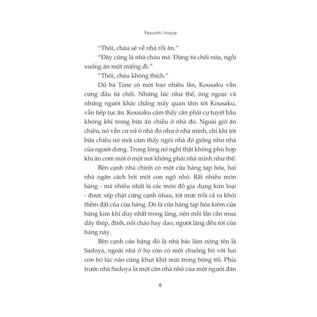 Tác giả: Yasushi Inoue Dịch giả: Vương Hải Yến Nhà xuất bản: Phụ nữ Số trang: 336 Kích thước: 14x20.5 cm Ngày phát hành: 03-2023 Rời xa cha mẹ từ khi mới lên năm, cậu bé Kousaku