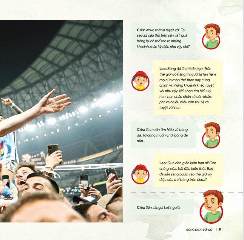 Bóng Đá A-Bờ-Cờ Ngày xửa ngày xưa, khi loài người còn sống trong các bộ lạc, người ta đã bắt đầu biết đến một môn thể thao (ngày ấy chưa gọi như thế) với trung tâm là một vật gì đó hình tròn. Có thể là một quả... dừa, quả bưởi, bàng quang động vật... Một trong những hình thức sơ khai nhất của bóng đá là Cuju, được chơi vào khoảng thế kỷ thứ 2 và thứ 3 trước Công nguyên trong triều đại Hán thuộc Trung Quốc cổ đại. Cuju có nghĩa là “đá bóng”, và người chơi dùng chân để đá một quả bóng da vào lưới nhỏ. Ở châu Âu, người Hy Lạp cổ đại chơi một môn thể thao có tên là Episkyros, trong đó hai đội cố gắng đưa trái bóng qua đường biên của đối phương. Tương tự, người La Mã cũng chơi Harpastum, một trò chơi dùng tay và chân để điều khiển bóng. Thời kỳ Trung cổ ở châu Âu, nhiều nền văn hóa châu Âu có những trò chơi tương tự như bóng đá. Ví dụ như môn Mob Football ở Anh, diễn ra trong các ngôi làng và có rất ít quy tắc cố định. Trò chơi này thường rất bạo lực và có thể kéo dài qua nhiều ngày. Người chơi đá hoặc đẩy một quả bóng (hoặc đôi khi là một vật tròn khác) qua các ngôi làng hoặc các địa điểm cố định. Bóng đá ngày xưa, hỗn loạn, bạo lực và chẳng theo một quy tắc nào cả. Tất cả chỉ thay đổi từ năm 1863, khi Hiệp hội Bóng đá Anh (Football Association, FA) được thành lập, và những quy tắc cơ bản đầu tiên của bóng đá hiện đại được biên soạn. Đây chính là cột mốc quan trọng trong sự hình thành và phát triển của bóng đá hiện đại, như chúng ta biết ngày nay. Một thế giới diệu kỳ, của niềm vui, của nước mắt, của những khoảnh khắc làm say đắm hàng triệu con tim, của những siêu sao có thể khiến cả khán đài như đóng băng mỗi khi có bóng..., đã được mở ra. Hãy cùng chúng tớ, Cris và Leo, bắt đầu cuộc phiêu lưu vào thế giới diệu kì này nhé!