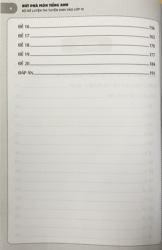 * Các đề luyện thi bám sát vào cấu trúc, định dạnh bài thi môn Tiếng Anh (không chuyên) tuyển sinh vào lớp 10 các trường PTTH CL, được biên soạn bởi các chuyên gia khảo thí dày dặn kinh nghiệ