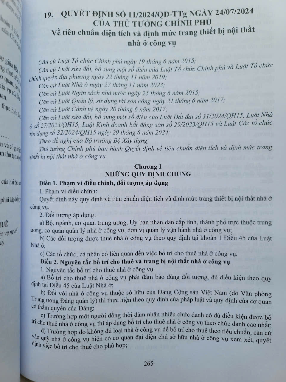 – Quyết định 11/2024/QĐ-TTg ngày 24/07/2024 Về tiêu chuẩn diện tích và định mức trang thiết bị nội thất nhà ở công vụ…