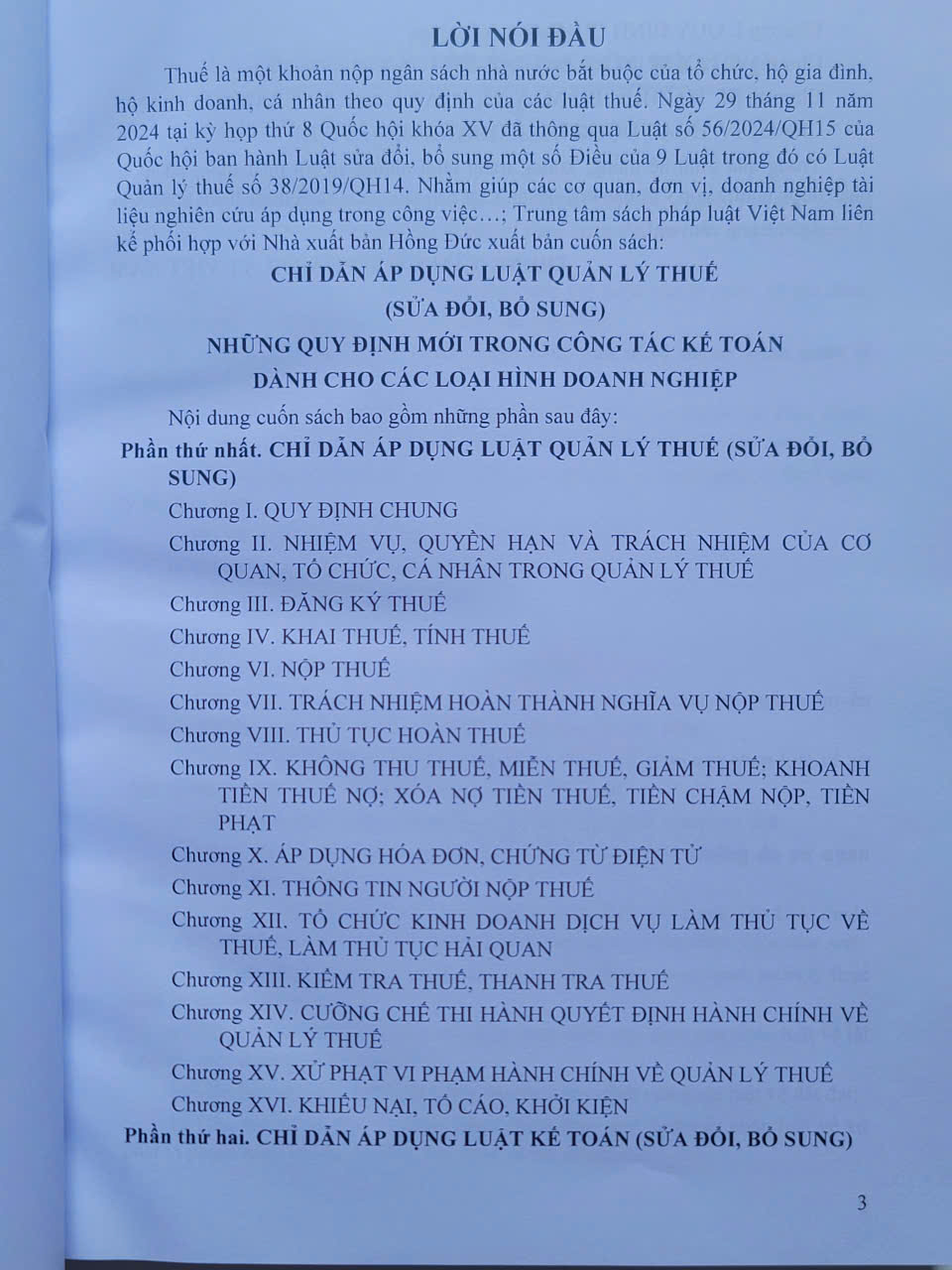 Nhằm phổ biến đến Quý Cơ quan, Đơn vị và Quý khách hàng thân thiết nắm bắt kịp thời những quy định mới nêu trên. Nhà sách Nam Việt xin trân trọng giới thiệu cuốn sách: Chỉ Dẫn Áp Dụng Luật Quản Lý Thuế sđ, bs 2024 – Những Quy Định Mới Trong Công Tác Kế Toán Dành Cho Các Loại Hình Doanh Nghiệp
