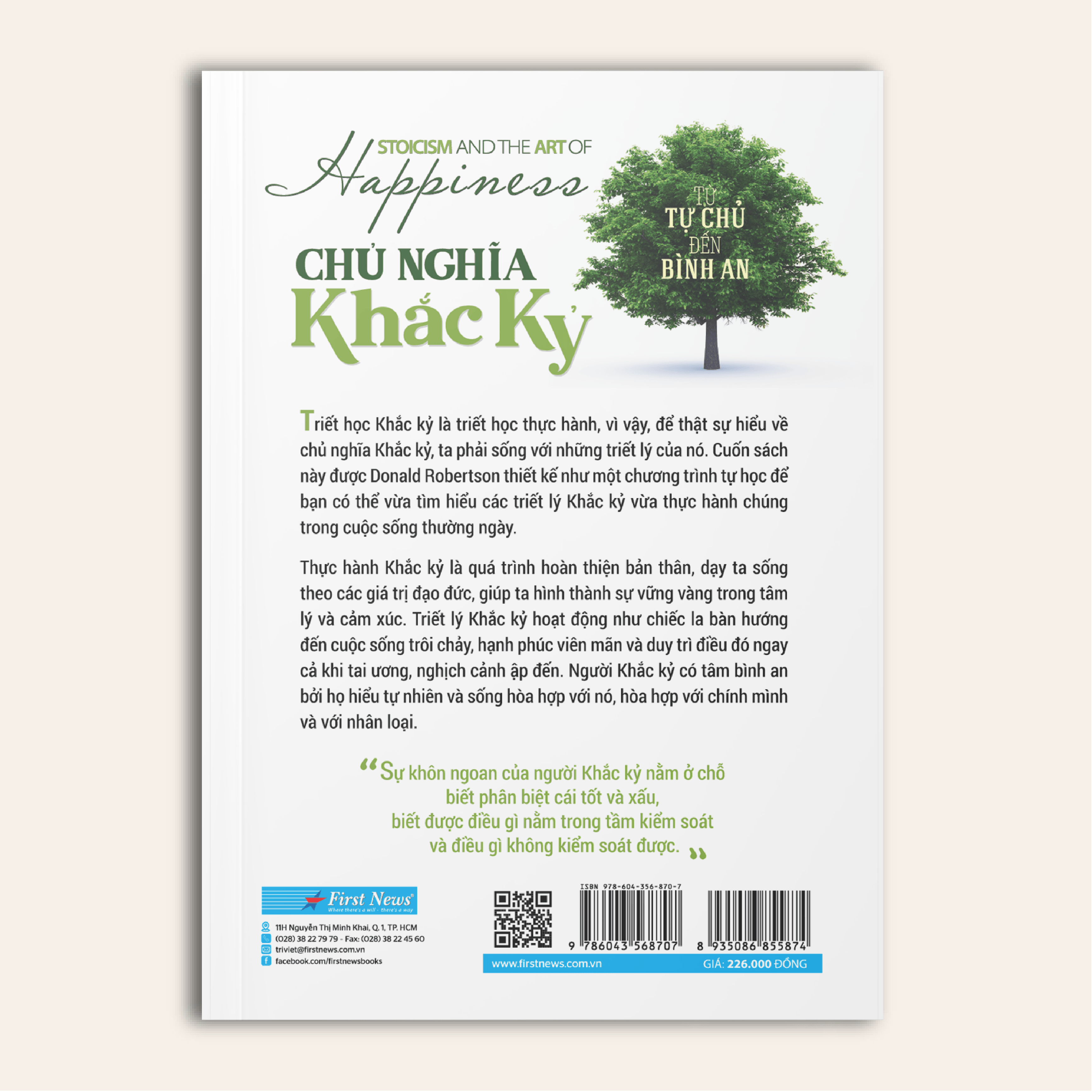 Xoay quanh một trường phái có nhiều biến thể, nhiều hiểu lầm, “Chủ nghĩa Khắc kỷ” của Donald Robertson là một nỗ lực để độc giả có bức tranh toàn cảnh về chủ nghĩa Khắc kỷ, hiểu đúng những tinh hoa của trường phái triết học này để áp dụng vào đời sống.