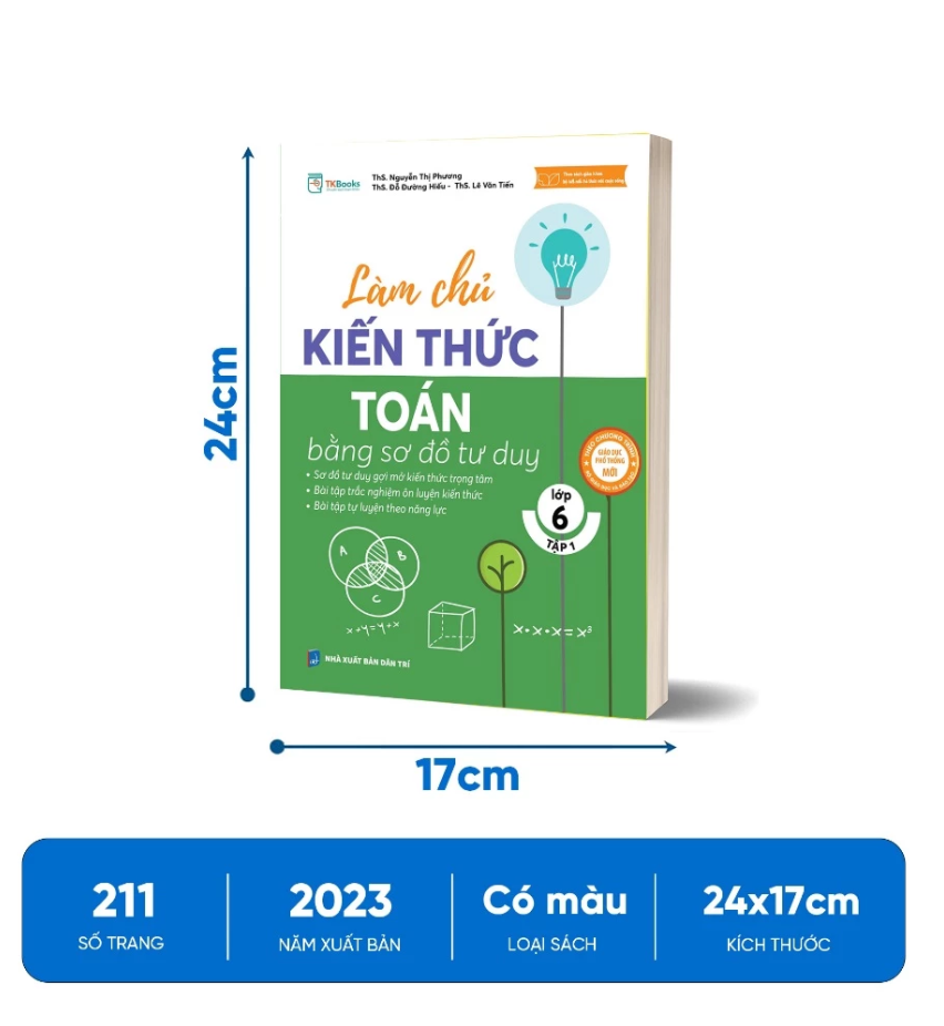 "Combo Làm chủ kiến thức Toán bằng sơ đồ tư duy Lớp 6 " là bộ sách được trình bày theo sơ đồ tư duy, cung cấp hệ thống kiến thức dễ học, dễ thực hành, phân loại theo năng lực và đặc biệt bám sát chương trình giáo dục phổ thông mới của Bộ giáo dục và đào tạo.
