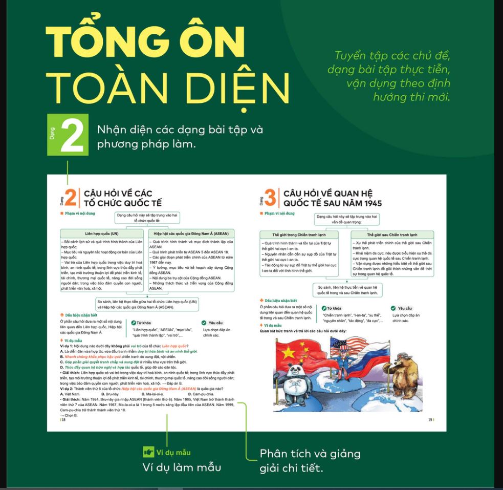 Các bài tập trong sách cũng được cập nhật theo định hướng nội dung mới: tăng cường các bài tập thực tiễn, các dạng bài thi đánh giá năng lực. Bạn có thể sử dụng sách để ôn thi tốt nghiệp và các kì thi đánh giá năng lực của các trường.