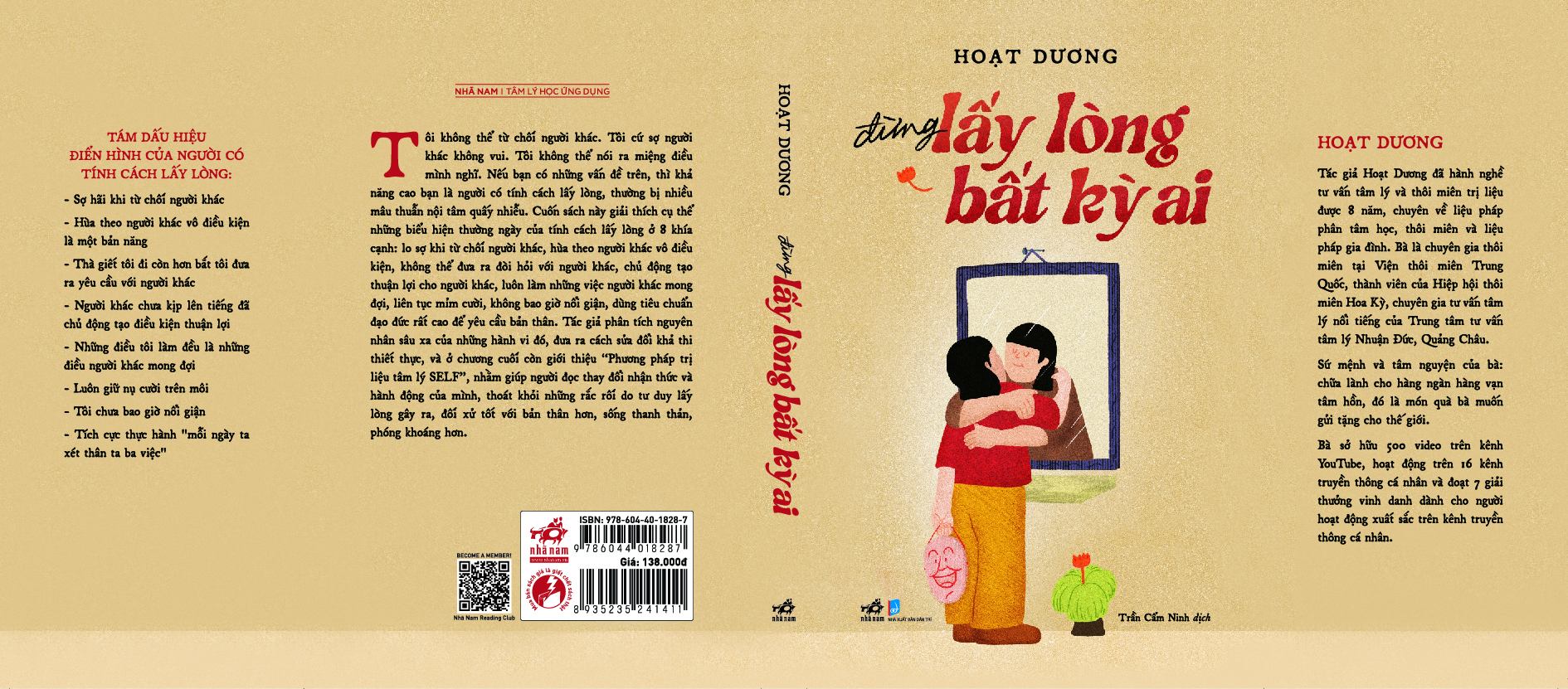 Cuốn sách này phân tích rõ những nguyên nhân sâu xa đằng sau những mô hình hành vi này, đồng thời cũng đưa ra những phương pháp thực tế để thay đổi. Trong chương cuối cùng của cuốn sách, tác giả còn giới thiệu về “Liệu pháp tâm lý SELF” với mục tiêu là “Tự cứu rỗi, sống hết mình”, liệu pháp này giúp độc giả thay đổi nhận thức và mô hình hành vi của bản thân trong cuộc sống sau này, thoát khỏi những rắc rối do tính cách lấy lòng gây ra.