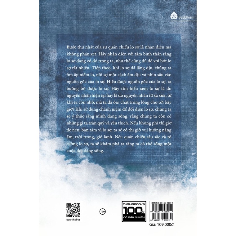 theo ngài và hô lớn bảo ngài dừng lại nhưng Bụt vẫn tiếp tục chậm rãi bình thản bước. Angulimala đuổi kịp Bụt và lớn tiếng hỏi tại sao ngài không chịu dừng lại. Đức Bụt trả lời: “Angulimala, ta đã dừng lại từ lâu, chỉ có ngươi là không dừng lại”. Và Bụt giải thích tiếp: “Ta đã dừng những hành động gây đau khổ. Tất cả các loài chúng sinh đều ham sống, sợ chết. Chúng ta phải nuôi dưỡng lòng thương và bảo vệ sự sống của mọi loài.” Angulimala tỉnh ngộ và xin Bụt giảng tiếp. Cuối cùng, Angulimala thề sẽ không bao giờ giết chóc, bạo ngược và xin Bụt xuất gia. Tại sao Đức Thế Tôn có thể bình tĩnh trước một tên giết người? Đây là một câu chuyện hiếm có nhưng tất cả chúng ta hằng ngày đều đã đối diện với hết lo sợ này đến lo sợ khác. Thực tập chánh niệm mỗi ngày có thể giúp ích rất nhiều. Thái Hà Books trân trọng giới thiệu tới bạn đọc cuốn sách “Fear – sợ hãi” của Thiền sư Thích Nhất Hạnh, với hơi thở, với tỉnh thức, chúng ta có thể đối xử với bất cứ điều gì xảy đến cho ta, để chúng ta cùng nhận diện không sợ hãi không ch