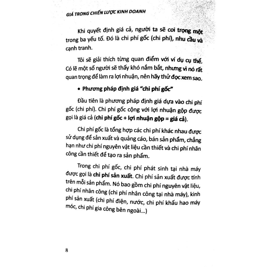 Cuốn sách được chia làm năm phần với sự phân tích kỹ lưỡng và ví dụ cụ thể đã mang lại cho độc giả cái nhìn chân thực mối quan hệ giữa chiến lược kinh doanh, chiến lược marketing và chính sách về giá cả.