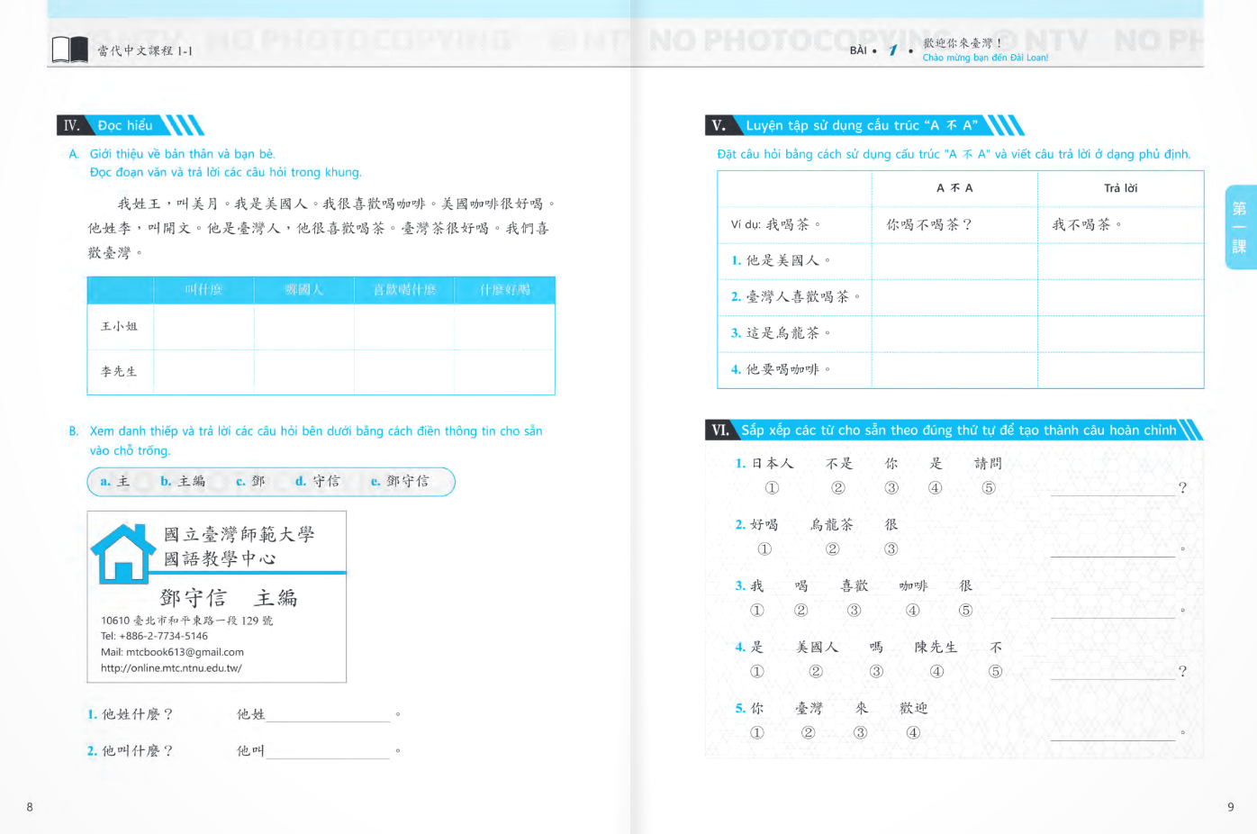 Giáo Trình Tiếng Hoa Đương Đại - Sách Bài Học 1-3 Bộ sách dành cho học sinh đến Đài Loan học tiếng Hoa và cũng là giáo trình phù hợp với học sinh, sinh viên