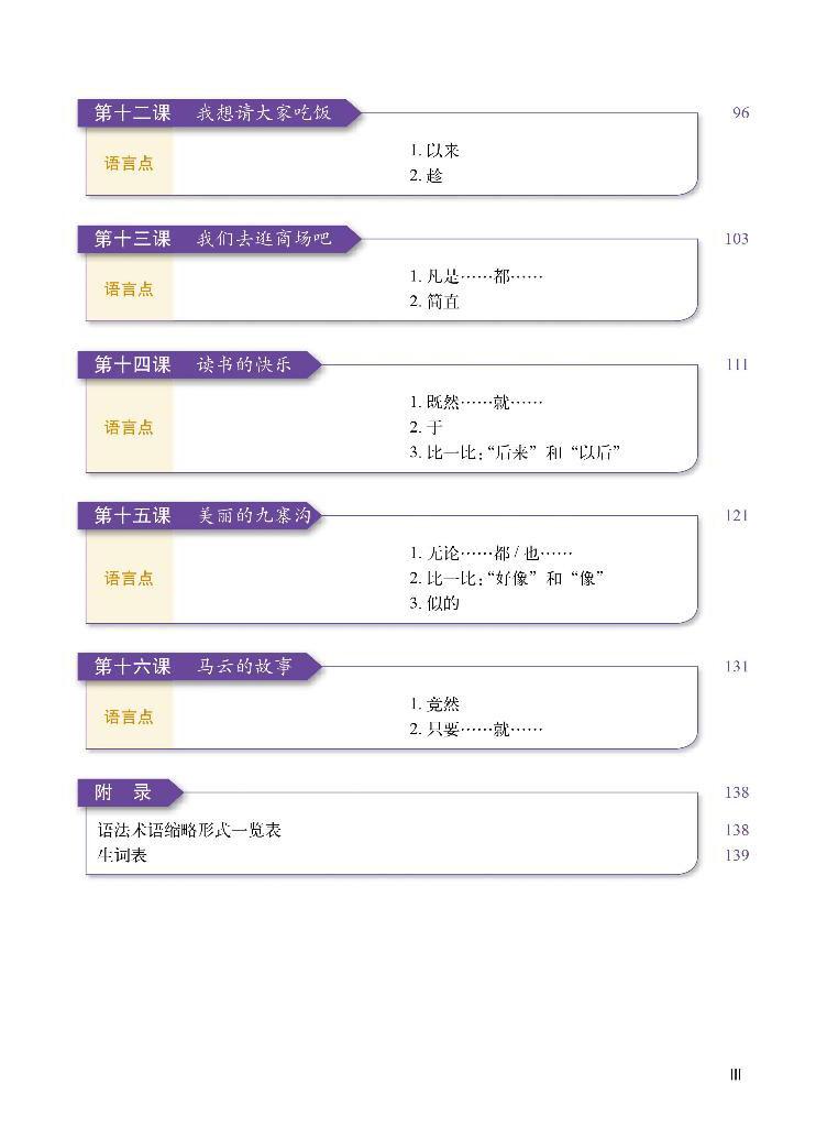 • Quyển 5-6 trải đều toàn bộ 2500 từ của Đề cương HSK cấp 5 và 3000 từ của đề cương “Kỳ thi tốt nghiệp giáo dục dự bị đại học dành cho lưu học sinh chính quy du học tại Trung Quốc do chính phủ Trung Quốc cấp học bổng”, đồng thời trải đều toàn bộ điểm ngôn ngữ của Đề cương HSK cấp 5. Bài khóa được biên soạn và viết lại dựa trên Đề cương chủ đề đàm thoại HSK cấp 5, chú trọng tính chân thực về nội dung, chú ý cả tính thú vị. Người học sau khi học xong quyển 5-6, tiếng Trung có thể đạt đến trình độ HSK cấp 5, đồng thời có thể thuận lợi thông qua Kỳ thi thống nhất tốt nghiệp giáo dục dự bị đại học dành cho lưu học sinh chính quy du học tại Trung Quốc do chính phủ Trung Quốc cấp học bổng.
