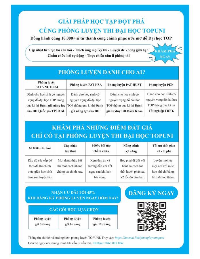 - Phụ huynh học sinh cần hỗ trợ con em ôn thi THPTQG và ĐGNL môn Toán, Lí, Hóa.