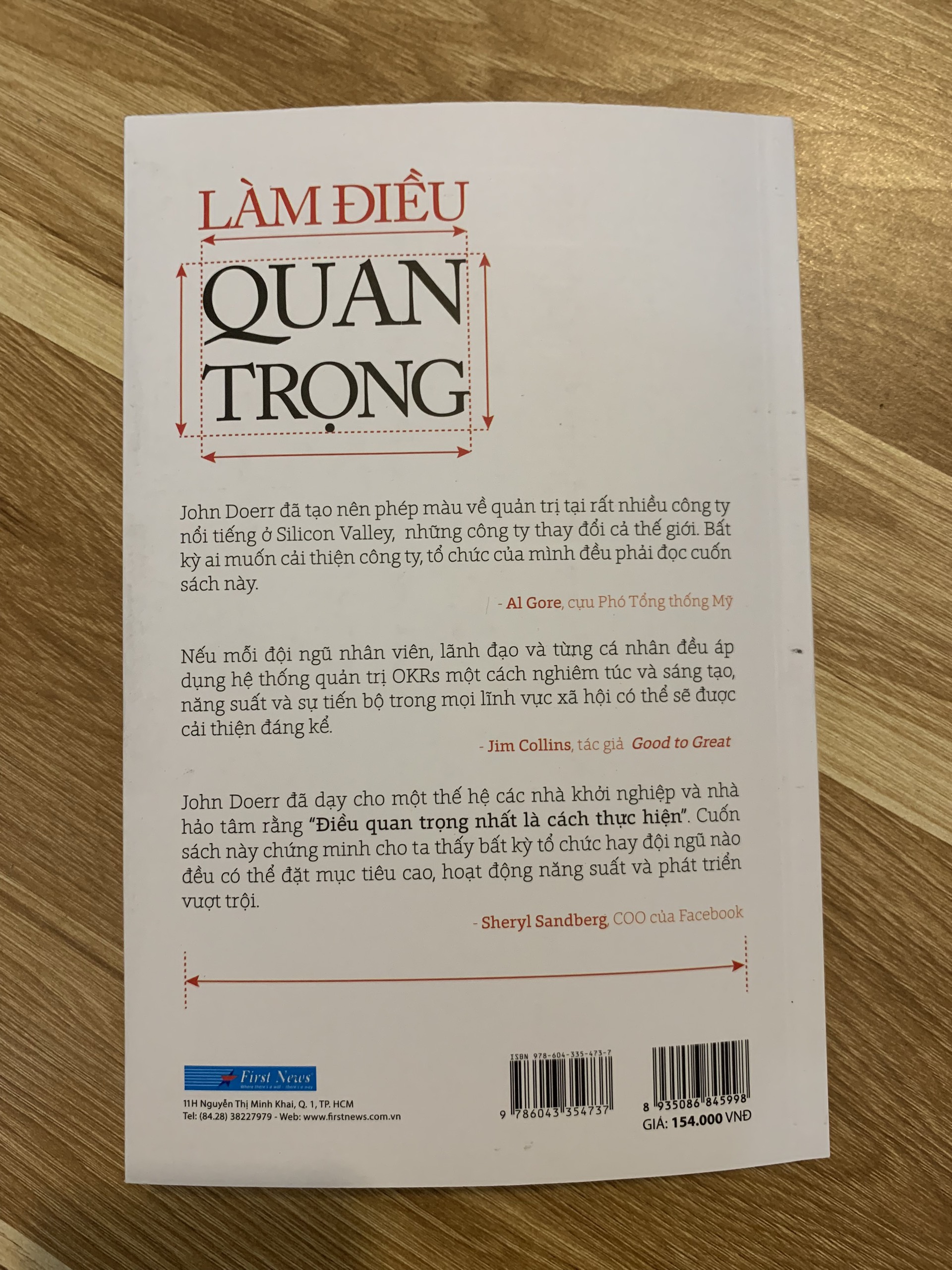 “Làm điều quan trọng” giống như một quyển nhật ký ghi chép lại kinh nghiệm về những trường hợp điển hình đã thành công nhờ phương pháp OKRs. Với mục đích có thêm ngày càng nhiều các công ty khởi nghiệp, hay những công ty lâu năm cũng sẽ nhận ra những lợi ích và bắt đầu áp dụng OKRs vào mô hình vận hành.