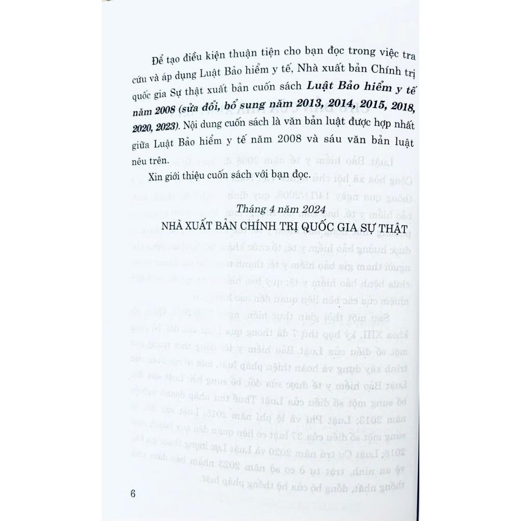 ✨Sách - Luật Bảo Hiểm Y Tế Năm 2008 (Sửa Đổi, Bổ Sung Năm 2103, 2014, 2015, 2018, 2020, 2023) - NXB Chính Trị Quốc Gia