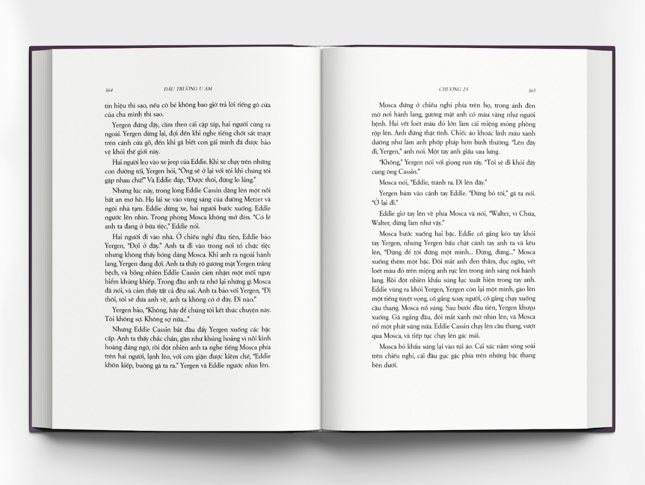 THÔNG TIN CHUNG: Đấu trường u ám Tác giả: Mario Puzo Dịch giả: Thanh Hoa Kích thước: 16 x 24 cm Số trang: 372 Hình thức: Bìa mềm, có bìa áo Giá bìa: 150.000đ Khối lượng: 500 gr Mã ISBN: 978-604-349-268-2 Mã sản phẩm: 8936203361360 Công ty phát hành: Công ty Cổ phần Văn hóa Đông A Nhà xuất bản: NXB Văn học Phát hành: 06/2022 NỘI DUNG GIỚI THIỆU: Walter Mosca, nhân vật chính của câu chuyện, là một cựu quân lục binh chỉ hơn hai mươi tuổi, trở về quê nhà ở Mỹ sau thời gian chiến đấu ở mặt trận Đức. Nhưng chính cái nền hòa bình mà anh ra đi chiến đấu để giành lấy ấy lại khuấy đảo tâm hồn đã chai sạn của người lính trẻ, thò cái vuốt sắc của mình vào nơi sâu thẳm nhất trong anh, sục sạo và phơi bày những cảm xúc nghiệt ngã. Không thể trốn tránh, Mosca lên tàu trở lại Đức, không chỉ để tìm kiếm những mảnh linh hồn vỡ nát của mình, mà còn để tìm người phụ nữ Đức anh đã gặp và đã yêu trong khi anh là ‘kẻ chinh phạt’, còn cô là ‘kẻ bị chinh phạt’. Cuộc đoàn tụ êm ả không diễn ra dài lâu, khi những bất ổn chính trị ở vùng đất hoang tàn này kéo họ vào vòng xoáy của thù hận, tiền bạc, quyền lực.   Tác phẩm này có các yếu tố của một tiểu thuyết đầu tay thành công: một cựu binh Mỹ từng tham gia các chiến dịch ở Đức tình nguyện đến làm việc cho phòng nhân viên dân sự ở Đức; một thị trấn ở miền Bắc nước Đức nơi cư dân phải gánh chịu nỗi đau chiến tranh, nơi chợ đen hết sức phát đạt, và nơi thế giới ngầm thật sự là những căn hầm nằm dưới đống đổ nát, dưới những xác chết bị chôn vùi.