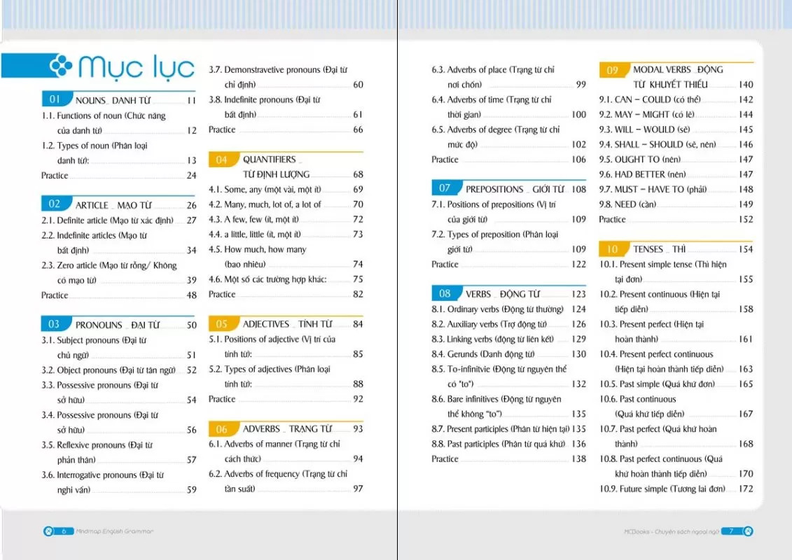 Cuốn sách Mind Map English Grammar – Ngữ pháp tiếng Anh bằng sơ đồ tư duy có tổng cộng 19 chủ đề, bao gồm: