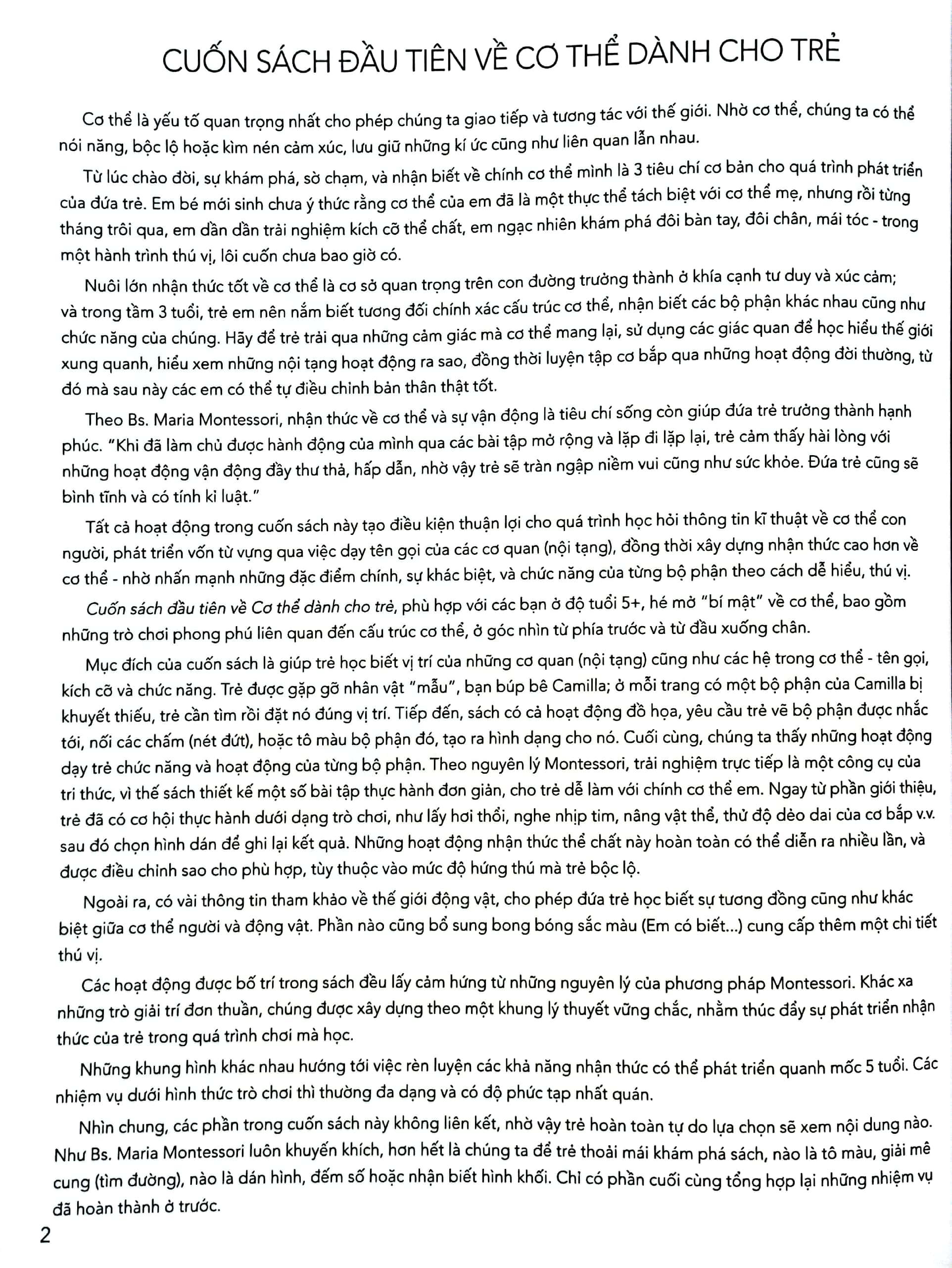 Montessori - Cuốn Sách Đầu Tiên Về Cơ Thể Dành Cho Trẻ Cơ thể là yếu tố quan trọng nhất cho phép chúng ta giao tiếp và tương tác với thế giới. Nhờ cơ thể, chúng ta có thể nói năng, bộc lộ ho...