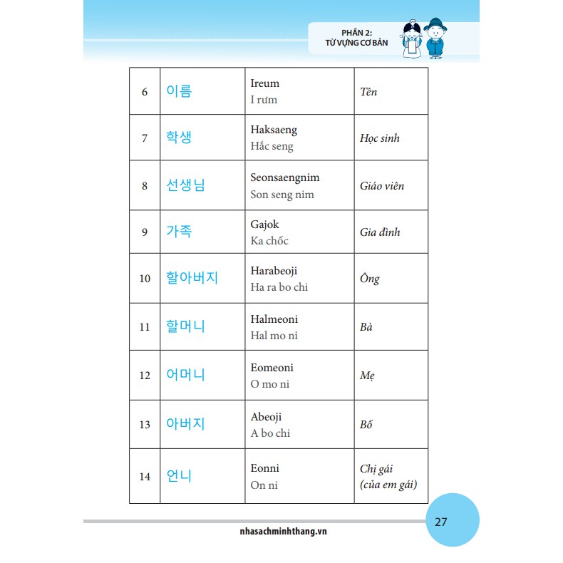 Tiếng Hàn Tổng Hợp Dành Cho Người Việt Nam - Sơ Cấp 1 Trong những năm gần đây, nhu cầu học tiếng Hàn và tìm hiểu về văn hóa Hàn Quốc đang có xu hướng tăng lên. Người học tiếng Hàn rất mong muốn có được một bộ giáo trình chuẩn, được biên soạn một cách tỉ mỉ và hữu ích nhất. Giáo trình tiếng Hàn tổng hợp lần đầu tiên được trao bản quyền chính thức tại Việt Nam Hiểu được điều đó, ngày 4-7, Đại diện chính phủ Hàn Quốc, ngài Woo Hyeong Min – Trưởng đại diện Văn phòng Quỹ giao lưu Quốc tế HQ tại Việt Nam cùng GS.TS.NGƯT Mai Ngọc Chừ – Chủ tịch Hội Nghiên cứu khoa học về Hàn Quốc của Việt Nam (KRAV) đã trao quyết định cho phép Công ty Cổ phần sách MCBooks của Việt Nam được xuất bản cuốn sách này tại thị trường Việt Nam. Và đây chính là bộ giáo trình tiếng Hàn tổng hợp đầu tiên có bản quyền chính thức có mặt tại Việt Nam. Cũng theo ông Woo Hyeong Min, Thực tế đây là bộ giáo trình chính thống mà tất cả người học tiếng Hàn tại Việt Nam cần sử dụng. Tuy nhiên nhiều năm qua bộ sách đến tay người dùng đều là sách lậu nên chưa đạt được kết quả mà chính phủ Hàn muốn mang tới Việt Nam. Do đó Chính phủ Hàn Quốc đã quyết định tìm 1 đơn vị xuất bản uy tín của Việt Nam để giúp họ mang đến cho người học những cuốn sách tiếng Hàn chất lượng tốt với giá cả hợp lý. Bộ giáo trình được Hội nghiên cứu khoa học Hàn Quốc của Việt Nam biên soạn và hiệu đính. Bộ giáo trình sẽ giúp nâng cao hiệu quả trong việc sử dụng ngôn ngữ Hàn sau tiếng mẹ đẻ và tiếng Anh, là nền tảng giúp người lao động Việt Nam nhận được những vị trí làm việc cao trong doanh nghiệp Hàn Quốc. Đây cũng là cách để thúc đẩy quan hệ hợp tác về văn hoá và giáo dục giữa hai nước trong thời gian tới. Giới thiệu cuốn Giáo trình tiếng Hàn tổng hợp dành cho người Việt Nam – Sơ cấp 1 Giáo trình tiếng Hàn tổng hợp dành cho người Việt Nam – Sơ cấp 1 được biên soạn dành cho người Việt Nam muốn học tiếng Hàn ở trình độ sơ cấp. Sách được biên soạn nhằm hướng tới việc sử dụng được trong các tiết học tiếng Hàn tại giảng đường đại học nên mỗi bài học được chia thành nhiều phần như: Lý thuyết cơ bản gồm từ vựng và cấu trúc ngữ pháp; phần luyện tập theo 4 kỹ năng giao tiếp như: Nghe – Nói – Đọc – Viết, phần luyện phát âm, phần tìm hiểu văn hóa… Các chủ đề trong sách được sắp xếp một cách có hệ thống và liên quan chặt chẽ với nhau. Giáo trình tiếng Hàn tổng hợp được biên soạn kèm theo một cuốn sách bài tập hỗ trợ giúp người học ôn tập kỹ hơn và có thể luyện tập nâng cao trong những trường hợp cần thiết. Nội dung trong Giáo trình tiếng Hàn tổng hợp – Sơ cấp 1 2 cuốn sách trong bộ Sơ cấp được xây dựng với 30 bài khóa và bảng chữ cái. Trong đó quyển 1 gồm phần bảng chữ cái và 15 bài đầu. Học hết quyển 1, bạn sẽ học đến quyển sơ cấp 2 với 15 bài còn lại. Cấu trúc tổng thể của giáo trình được xây dựng theo các chủ đề; mỗi chủ đề được liên kết thống nhất với một hệ thống các từ vựng và cấu trúc ngữ pháp cơ bản, bài tập ứng dụng, kỹ năng và tìm hiểu văn hóa. Trong mỗi bài học, nội dung học được chia thành các phần như: luyện từ vựng, luyện ngữ pháp cơ bản, luyện tập kỹ năng nghe – nói – đọc – viết, luyện phát âm, tìm hiểu văn hóa của đất nước Hàn Quốc xinh đẹp. Và kết thúc mỗi bài đều có thêm bảng từ mới xuất hiện trong bài học. Phần cuối của sách, các tác giả đưa ra hệ thống từ mới được sắp xếp theo thứ tự của bảng chữ cái. Đây là những từ không xuất hiện trong phần ngữ pháp, từ vựng cơ bản; nhưng lại xuất hiện nhiều ở phần luyện tập của từng bài.