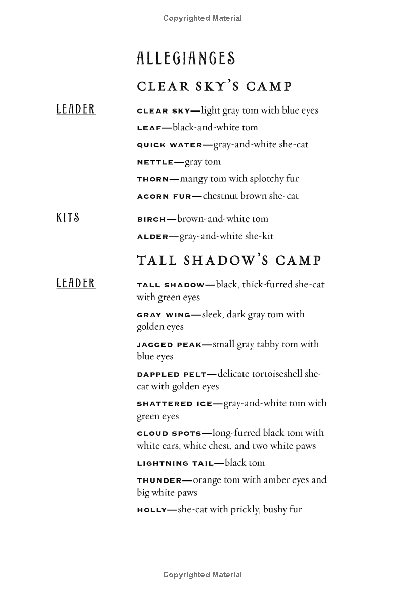 The spirit-cats have spoken: to survive, the cats from the mountains must grow and spread like the Blazing Star. Clear Sky believes the only way to grow is to band together again, but few cats are willing to ally with him. While Tall Shadow plans to establish a new camp in the pine forest, River Ripple is content by the water, and Wind Runner has made her own home on the moor.