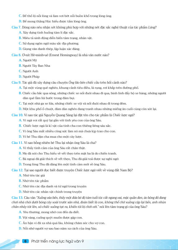 Các câu hỏi, bài tập dạy đọc hiểu văn bản được thiết kế theo các mức độ: nhận biết, thông hiểu và vận dụng. Các bài tập có sự cập nhật các kiến thức cơ bản của các bộ sách giáo khoa khác nhau, bám sát theo cấu trúc các dạng để thị phổ biến hiện nay, giúp học sinh làm quen và dẫn thành thạo các dạng bài tập ôn luyện và thi cử. Các bài tập cũng được đa dạng hoá, sử dụng nhiều nguồn ngữ liệu, làm mới về văn bản đọc hiểu, giúp người học tiếp cận các dạng tư liệu khác nhau.