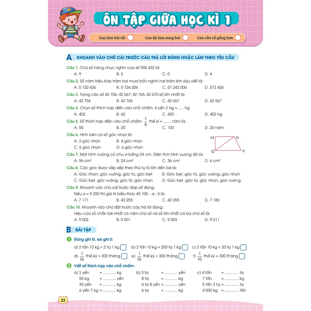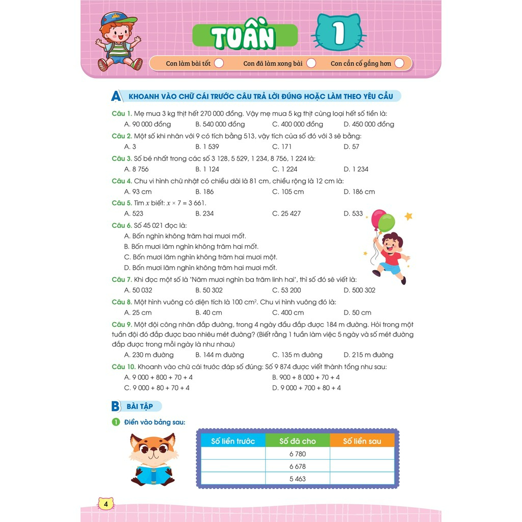 Combo Bộ Đề Kiểm Tra Môn Toán + Tiếng Việt Lớp 4 (Dùng Kèm SGK Kết Nối Tri Thức Với Cuộc Sống) (Bộ 4 Cuốn) 1. Bộ Đề Kiểm Tra Môn Toán Lớp 4 Tập