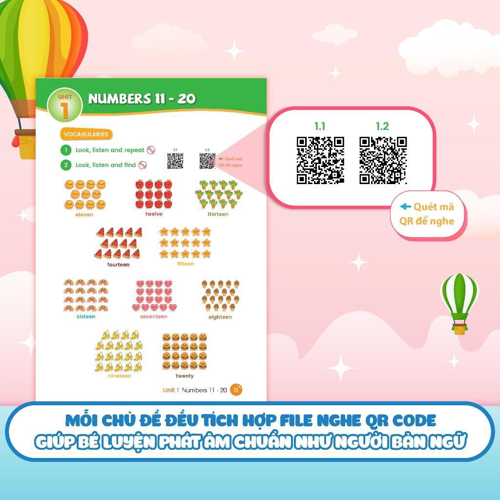 - Tích hợp File nghe quét mã tiện lợi tại mỗi chủ đề giúp bé luyện phát âm chuẩn như người bản ngữ