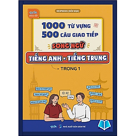 Cuốn sách "1000 Từ Vựng - 500 Câu Giao Tiếp - Ngữ Pháp 'Song Ngữ' Tiếng Anh - Tiếng Trung" bao gồm 13 chủ đề quen thuộc trong đời sống hàng ngày, cung cấp 1000 từ vựng thông dụng với bản dịch song ngữ và ví dụ minh họa.