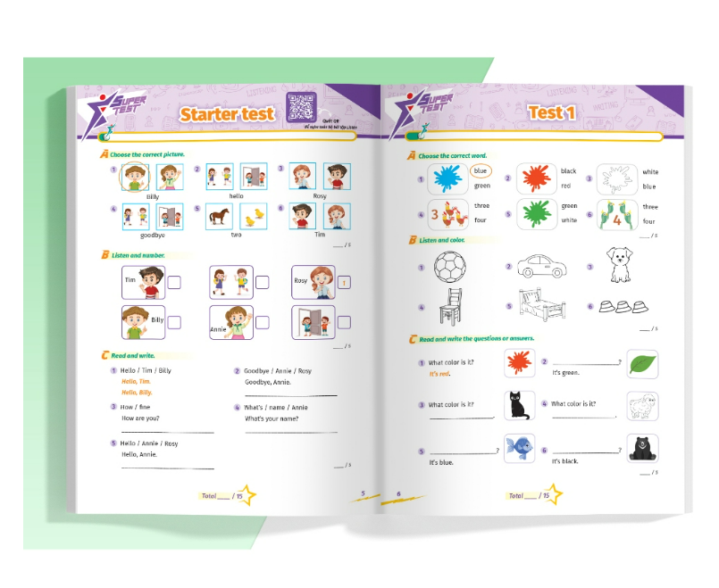 Với Bộ sách Super Test – Đề kiểm tra nhanh Tiếng Anh cho học sinh, bố mẹ sẽ giúp con tiến bộ từng ngày, tự tin với khả năng ngôn ngữ của mình khi ôn luyện Tiếng Anh bởi các bài tập về 4 kỹ năng: Nghe – Nói – Đọc – Viết được liên kết với nhau theo logic của bài học.