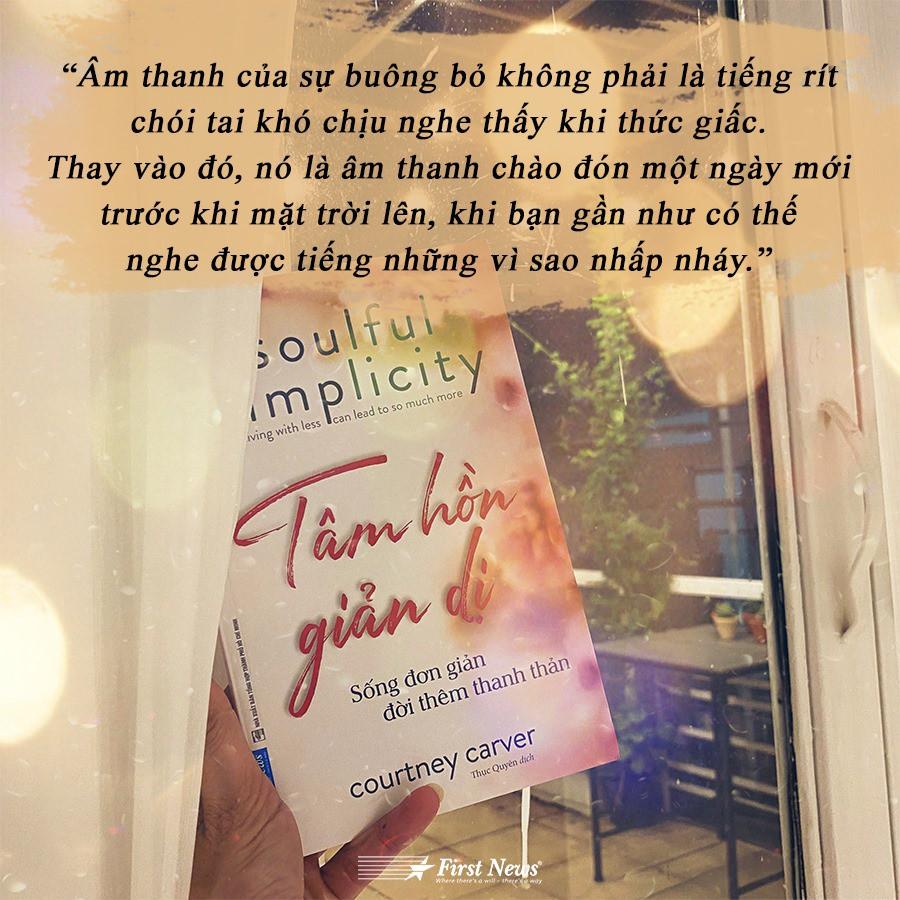 “Tâm hồn giản dị” được viết bởi Courtney Carver – một blogger nổi tiếng hàng đầu về lối sống tối giản. Trước khi viết blog và được nhiều người biết đến, Carver là một người phụ nữ đang gặp phải nhiều khó khăn trong cuộc sống: Trải qua “đổ vỡ” hôn nhân, nuôi con một mình, tái giá với một người đàn ông tốt bụng thì lại phát hiện bản thân mắc phải căn bệnh đa xơ cứng (một chứng rối loạn não bộ và tủy sống làm suy giảm chức năng thần kinh).