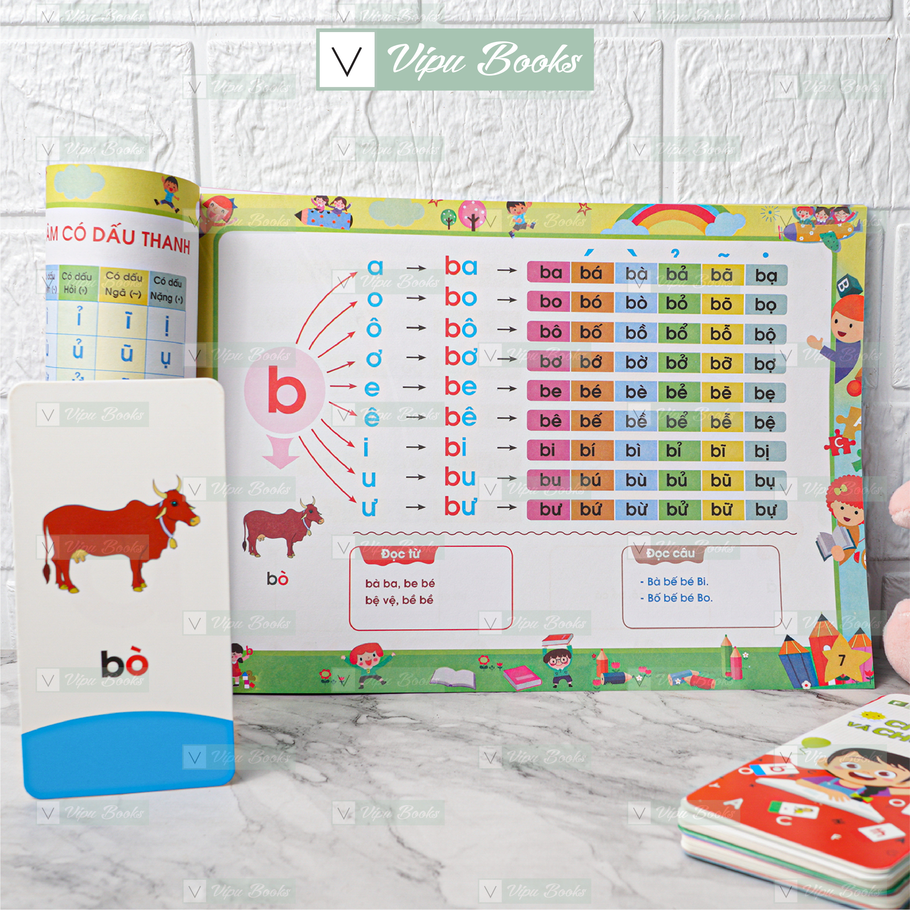 Tập Đánh Vần Tiếng Việt + Flasdcard Chữ Cái Chữ ghép Và Vần (Giáo cụ hỗ trợ học vần tiếng Việt 1) - Giúp phát triển tư duy ngôn ngữ cho trẻ - Giúp trẻ