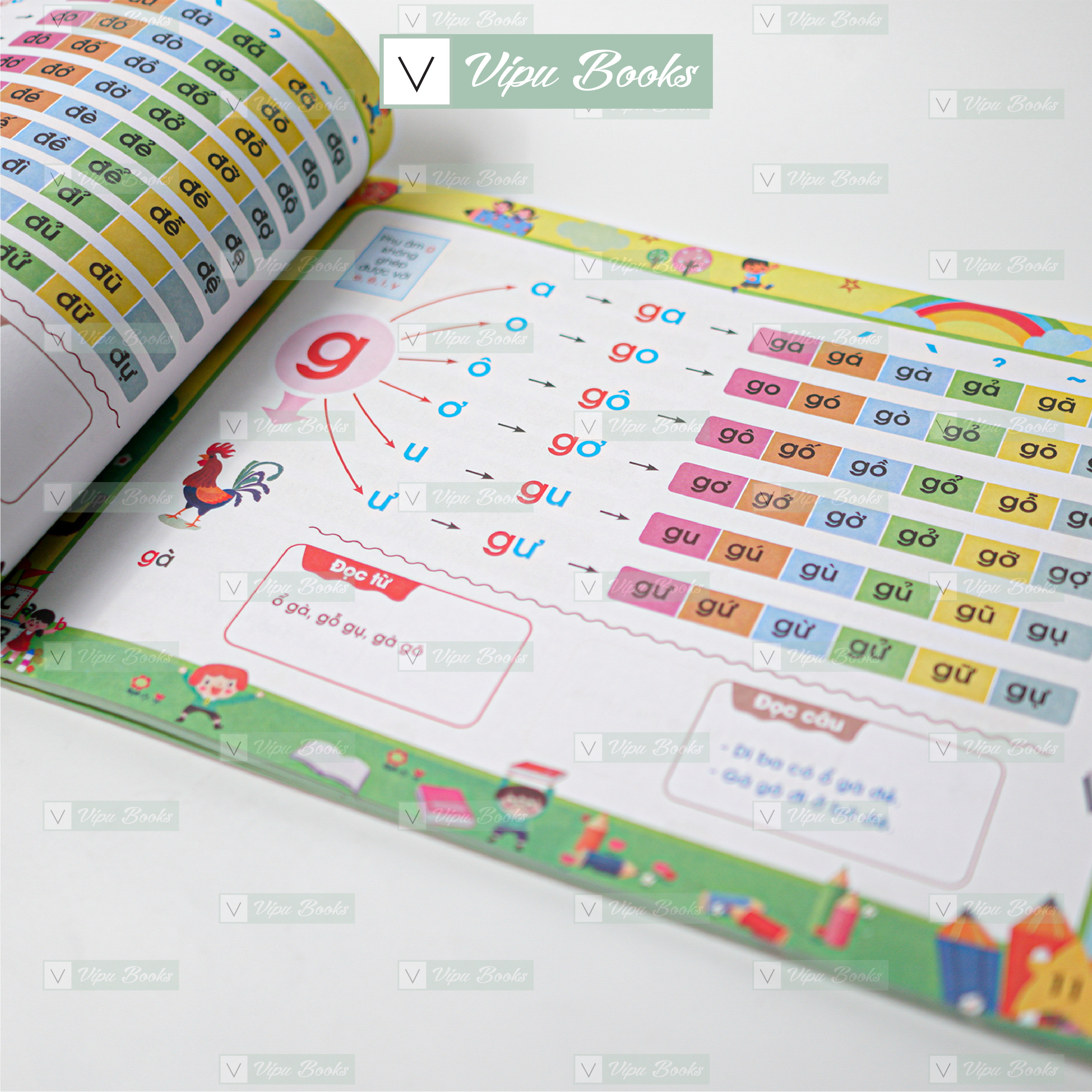 Cuốn Sách Đánh Vần Tiếng Việt với 124 trang cùng đầy đủ nội dung chữ cái cùng bộ học vần theo chương trình mới nhất bài học giới thiệu bảng chữ cái Tiếng Việt, dấu thanh và vần Tiếng Việt giúp các bé bước đầu làm quen với chữ viết và cách đánh vần Tiếng Việt. Mỗi bài học gồm các từ vựng, câu, đa dạng, bé tha hồ tập đánh vần, tập đọc mà không bị nhàm chán. Đặc biệt, các chữ in mầu, vẽ sơ đồ cầu trúc từ đơn giản đến phức tạp cực kỳ đễ hiểu và logic cùng màu sắc tươi tắn khiến cho việc học trở nên thú vị hơn. Đặc biệt phiên bản Sách Đánh Vần này đã được tác giả thêm vào các đoạn ca dao, các mẩu truyện cho bé càng hăng say trong việc học.