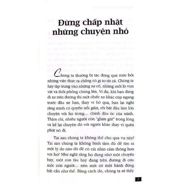 Khi bạn không chấp nhặt những chuyện nhỏ, cuộc sống của bạn không phải ngay lập tức trở nên hoàn hảo, nhưng bạn sẽ học được cách chấp nhận những điều tự nhiên đang diễn ra xung quanh bạn. Nếu bạn áp dụng những bí quyết này, bạn sẽ học được hai nguyên tắc để sống một cách hòa hợp:
