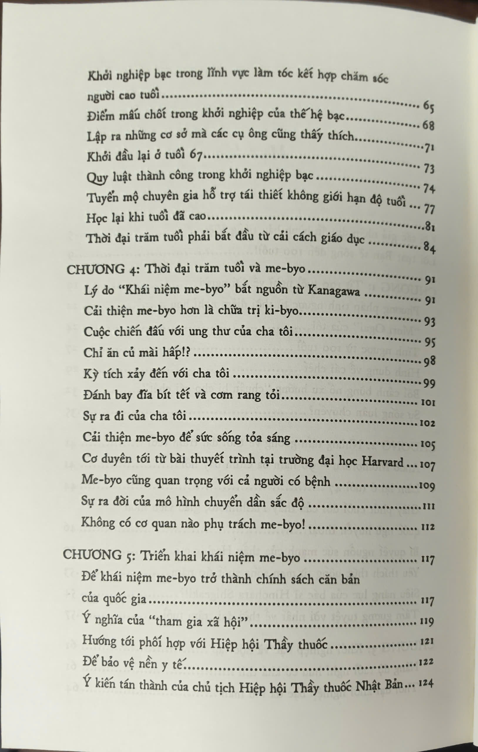 Nhật Bản đang chuẩn bị bước vào kỷ nguyên xã hội siêu già hóa, với số lượng người cao tuổi nhiều nhất từ trước đến nay, dự kiến đến năm 2050, cứ 142 người Nhật sẽ có 1 người trên 100 tuổi, đây là một thách thức rất lớn cho toàn xã hội, đặc biệt là hệ thống phúc lợi, y tế và bảo hiểm. Để chuẩn bị cho tương lai này, với cương vị là Thống đốc tỉnh Kanagawa, tác giả Kuroiwa Yuji đã đưa ra rất nhiều thảo luận, trong đó tập trung vào khái niệm me-byo, một trạng thái ở giữa khỏe mạnh và bệnh tật. Trong cuốn sách này, ông chia sẻ về khái niệm me-byo, cũng như khuyến khích thay đổi lối sống và tạo dựng một hệ thống xã hội phù hợp nhằm cải thiện trạng thái me-byo của cá nhân cũng như toàn xã hội, từ đó chuẩn bị cho “thời đại trăm tuổi” trong tương lai không xa.
