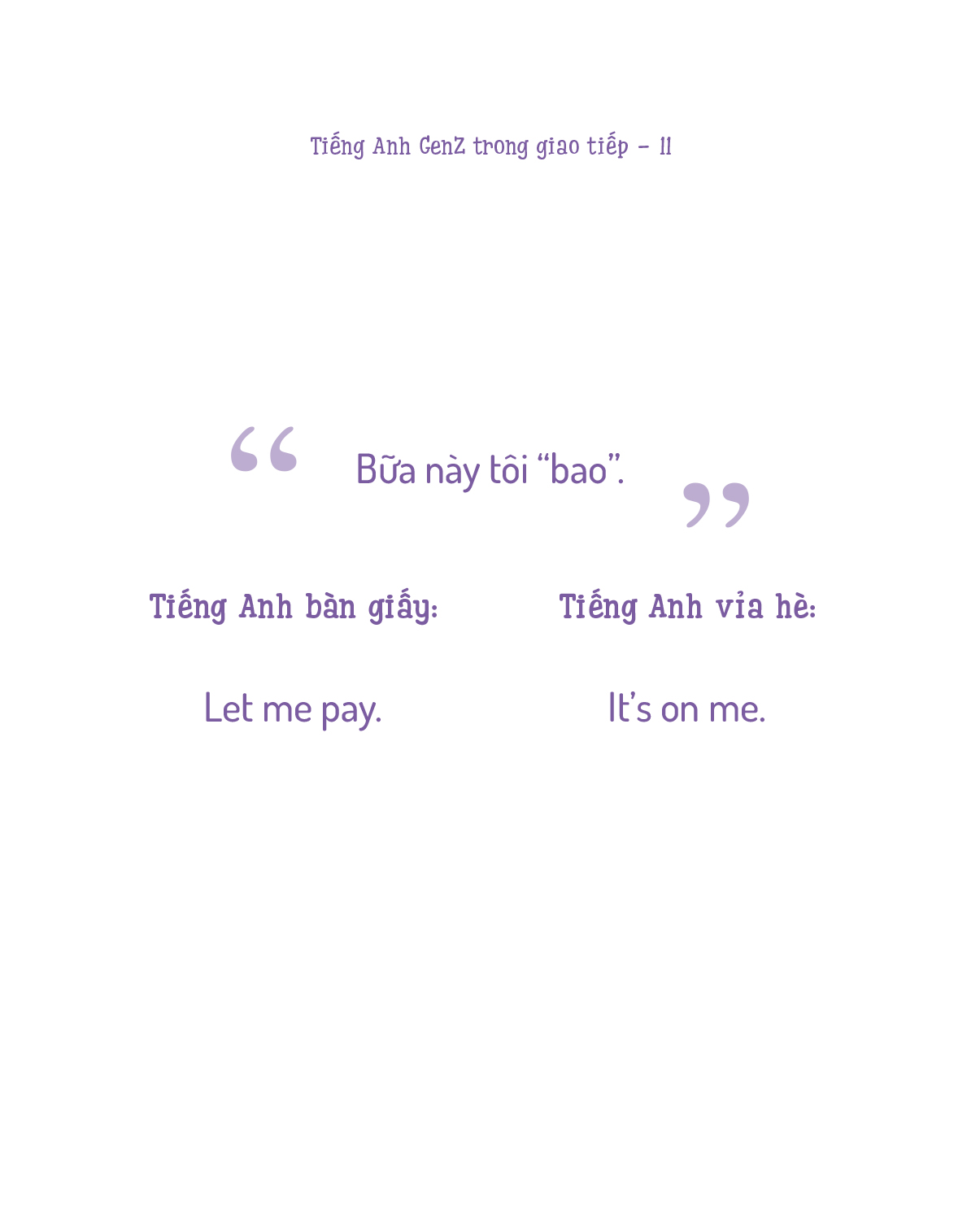Đây mới chỉ là hai trong số vô vàn điều hấp dẫn mà cuốn “Tiếng Anh GenZ trong giao tiếp” mang lại. Khi khám phá cuốn sách, bạn sẽ ngã ngửa với những từ tiếng Anh quen thuộc nhưng lại đầy mới lạ.