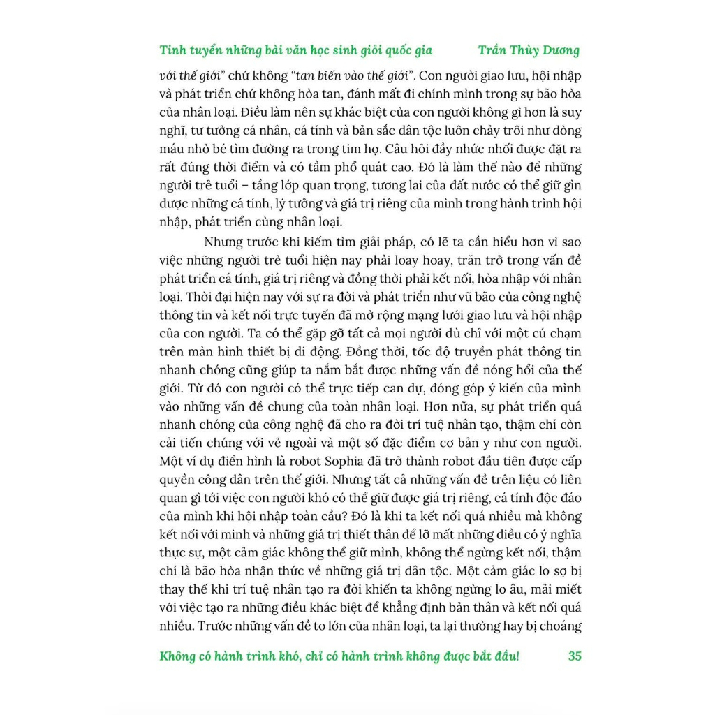 Mua tại TiktokSách Tinh tuyển Những bài văn Học sinh giỏi Quốc gia 2025 Cuốn sách này là bộ sưu tập 50 bài văn xuất sắc của các thí sinh đạt giải Nhất, Nhì trong kỳ thi Học sinh giỏi Quốc gia năm 2025. Sách được chia thành hai phần, cung cấp một nguồn tài liệu tham khảo chất lượng cao, giúp người học nâng cao tư duy và kỹ năng viết văn. Điểm nổi bật của cuốn sách Phần 1: Nghị luận xã hội (25 bài)