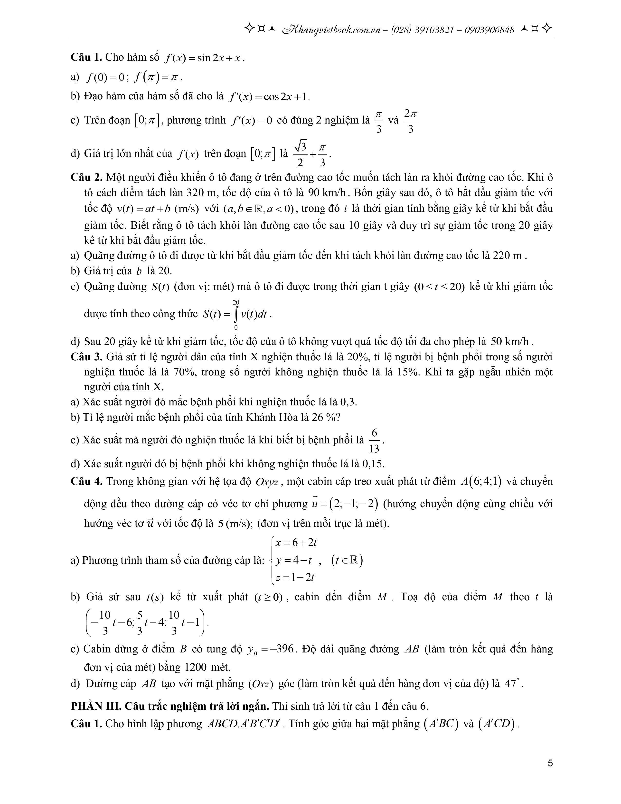 Phần III. Trả lời ngắn.