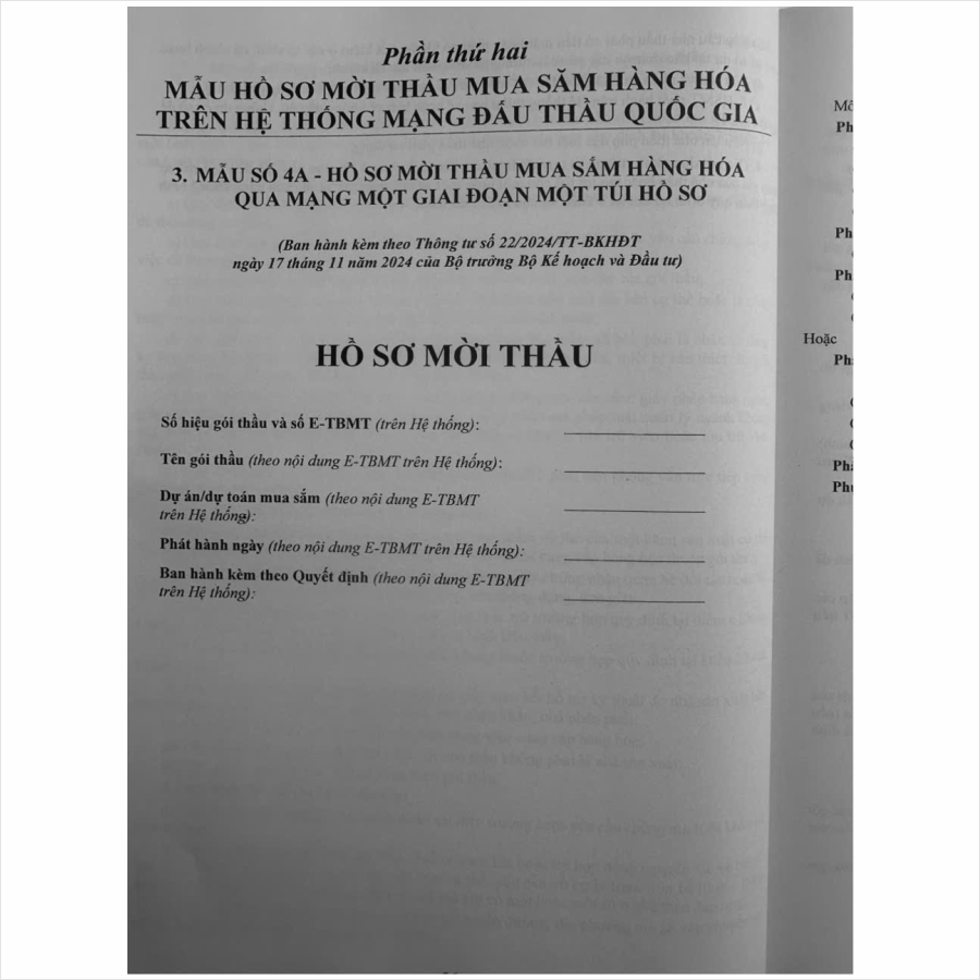 MẪU SỐ 4B – Hồ sơ mời thầu mua sắm hàng hóa qua mạng một giai đoạn hai túi hồ sơ