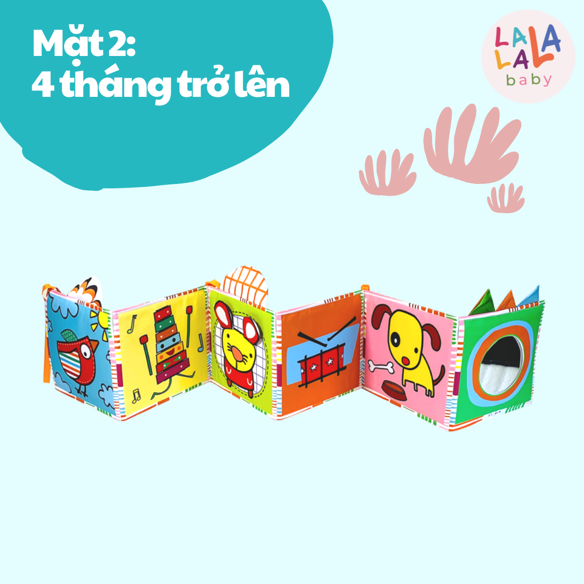 Tranh Vải Kích Thích Thị Giác Cho Bé Sơ Sinh, Phát Triển Não Bộ Tummy Time - Lalala Baby Sách vải lật mở đa tương tác Lalala baby, made in Việt Nam - Chất liêu: