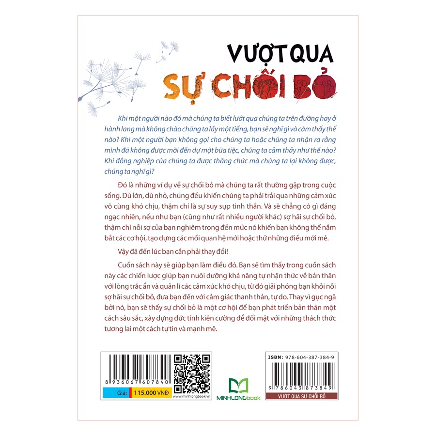 Cuốn sách này sẽ giúp bạn làm điều đó. Bạn sẽ tìm thấy trong cuốn sách này các chiến lược giúp bạn nuôi dưỡng khả năng tự nhận thức về bản thân với lòng trắc ẩn và quản lí các cảm xúc khó chịu, từ đó giải phóng bạn khỏi nỗi sợ hãi sự chối bỏ, đưa bạn đế với cảm giác thanh thản, tự do. Thay vì gục ngã bởi nó, bạn sẽ thấy sự chối bỏ là một cơ hội để bạn phát triển bản thân một cách sâu sắc, xây dựng đức tính kiên cường để đối mặt với những thách thức tương lai một cách tự tin và mạnh mẽ.