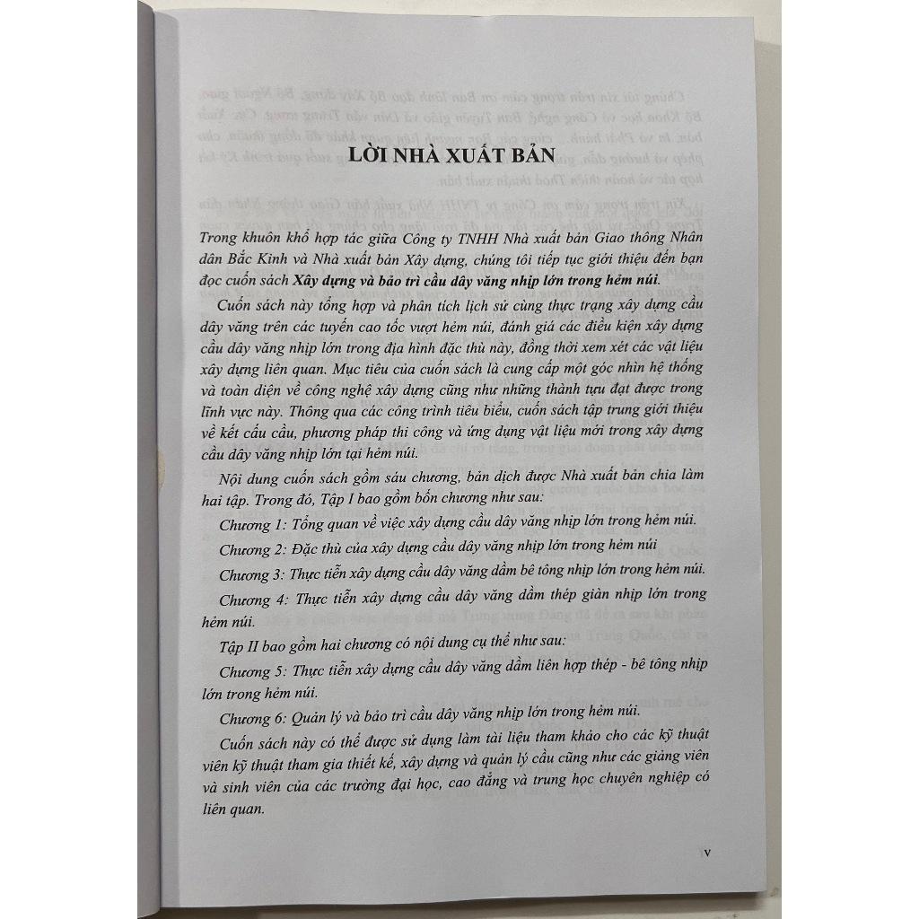 Cuốn sách này tổng hợp và phân tích lịch sử cùng thực trạng xây dựng cầu dây văng trên các tuyến cao tốc vượt hẻm núi, đánh giá các điều kiện xây dựng cầu dây văng nhịp lớn trong địa hình đặc thù này, đồng thời xem xét các vật liệu xây dựng liên quan. Mục tiêu của cuốn sách là cung cấp một góc nhìn hệ thống và toàn diện về công nghệ xây dựng cũng như những thành tựu đạt được trong lĩnh vực này. Thông qua các công trình tiêu biểu, cuốn sách tập trung giới thiệu về kết cấu cầu, phương pháp thi công và ứng dụng vật liệu mới trong xây dựng cầu dây văng nhịp lớn tại hẻm núi.