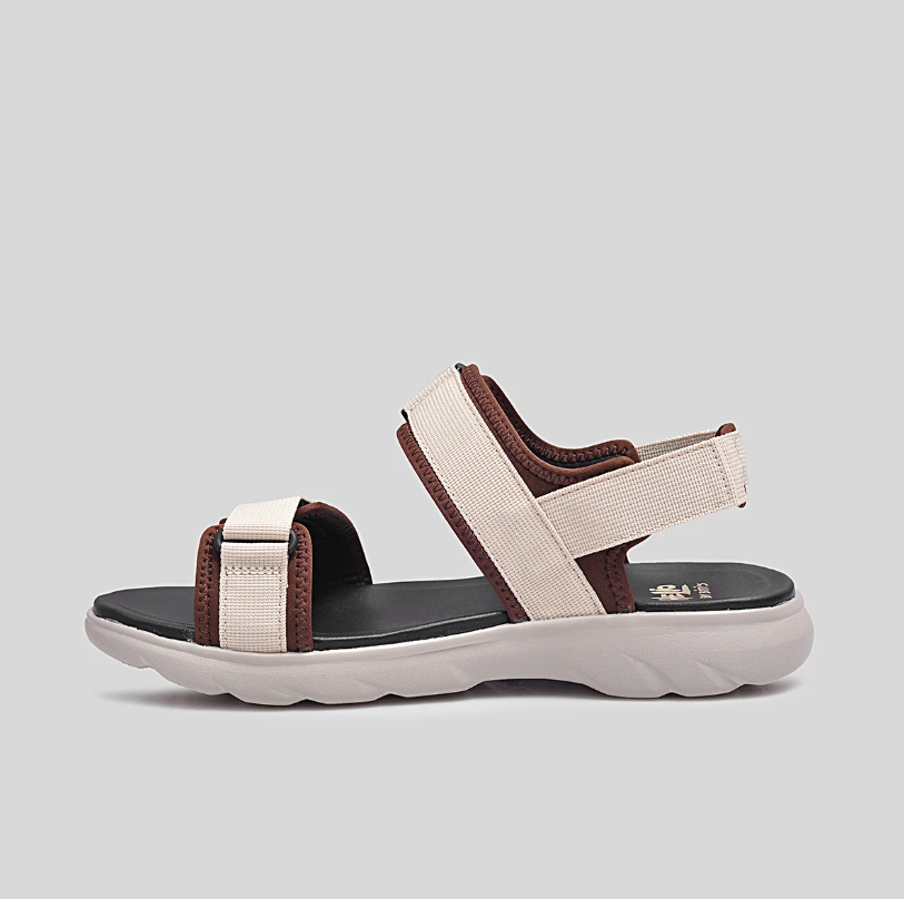 Dép sandal Helio BEB005000 nâu phối kem mang hơi hướng retro hiện đại, với phối màu nâu chocolate trầm ấm kết hợp đường viền kem nhẹ, cực kỳ hợp cho những bạn trẻ yêu thích phong cách tối giản – cổ điển pha chút cá tính.
